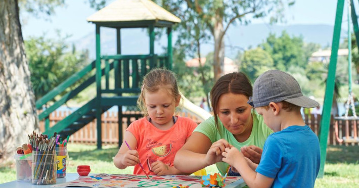 Proprietatea este o alegere potrivită pentru familiile cu copii. Cei mici se pot distra în aer liber la piscina pentru copii sau în locul de joacă special amenajat. Pentru orele toride cei mici pot opta pentru clubul amenajat la interior, unde există jocuri și programe de animație. Copiii au la dispoziție jocuri și puzzle-uri. Pentru cei mai mici Louis Corcyra Beach oferă cărucioare și servicii de babysitting.