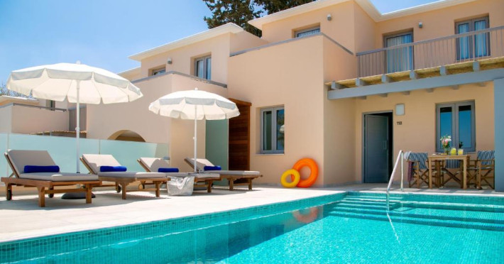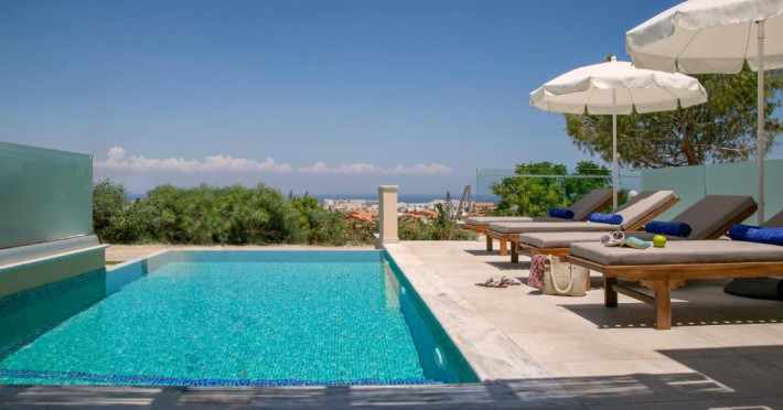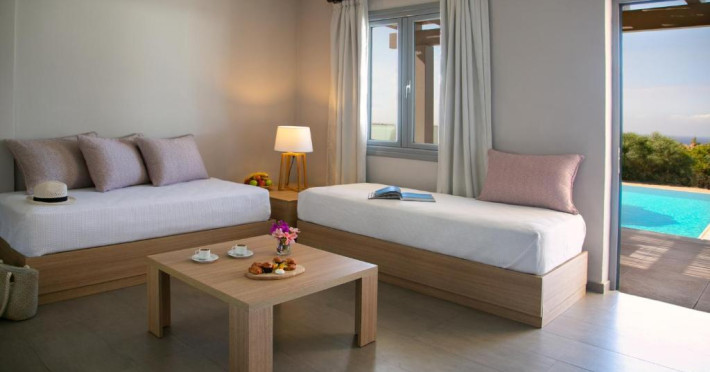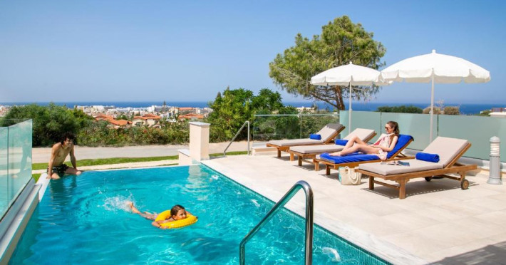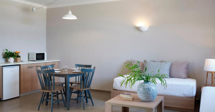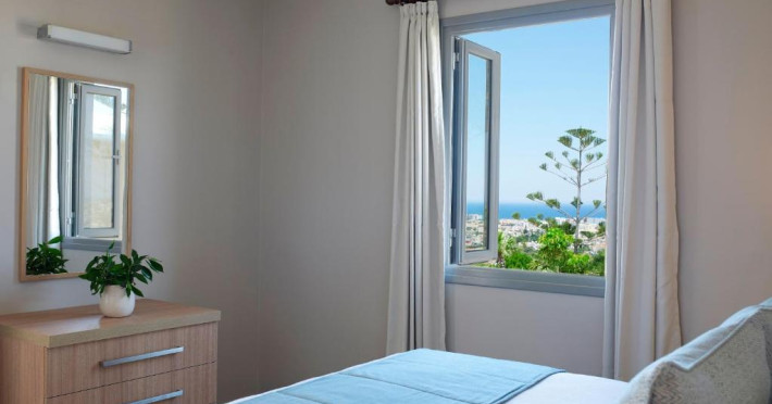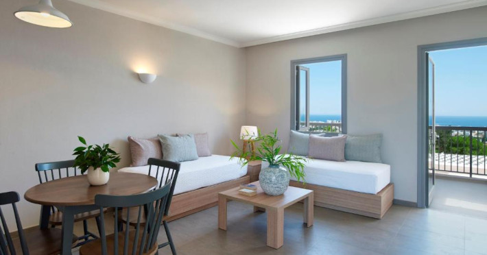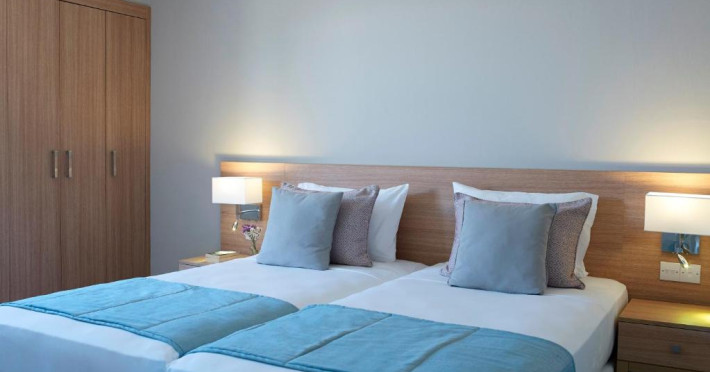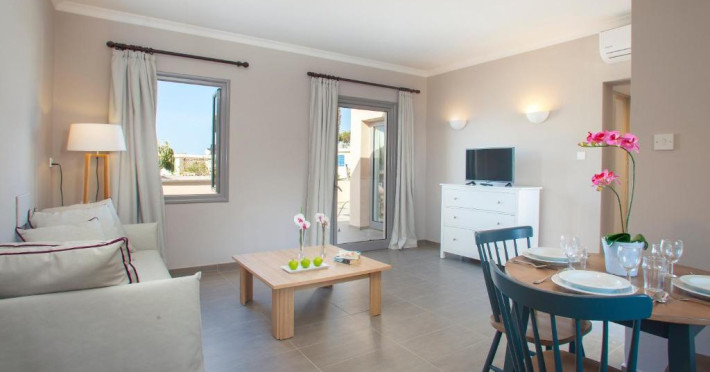 Camerele confortabile de la Louis St. Elias Resort & Waterpark au pardoseală de gresie/ marmură, aer condiționat, Tv cu canale prin satelit și seif. Fiecare cameră dispune de mașină pentru preparare cafea sau ceai și fierbător Oaspeții au acces gratuit la serviciul Wi-fi în camere. Camerele au balcon cu vedere la piscină sau la grădină. În camere există baie cu cadă sau duș ce are în dotare foehn și articole de toaletă gratuite. Curățenia in cameră se face zilnic. Anumite camere au acces la piscină privată. Există unități de cazare care au chicinetă utilată cu frigider și ustensile de bucătărie. De asemenea, sunt disponibile un cuptor cu microunde și o masă unde oaspeții pot mânca. Proprietatea oferă camere pentru familie cu o suprafață mai mare și un număr mai mare de paturi față de cele standard.