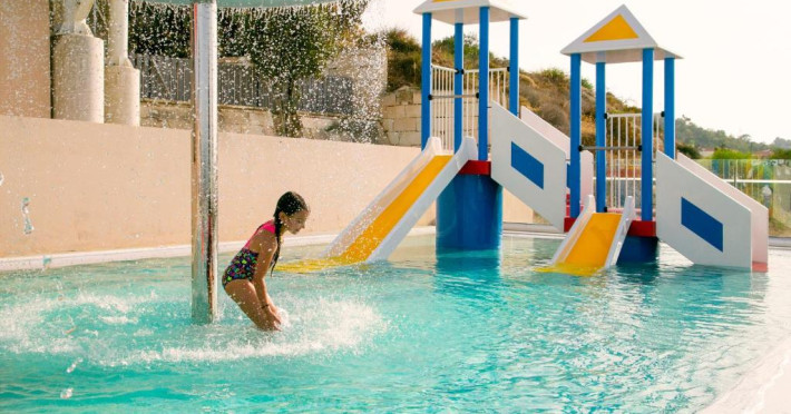 Copiii se pot distra la piscina special amenajată, prevăzută cu tobogan cu apă. Pentru orele toride cei mici pot opta pentru zona de joacă amenajată la interior, unde există jocuri și muzică. Copiii au la dispoziție jocuri și puzzle-uri. Pentru cei mai mici Louis St. Elias Resort & Waterpark oferă cărucioare.
