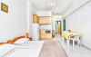 Loutra Village is made out of the Karnagio Apartments, Villa Solena, Arsinoi, Mary's house and Studios Elissavet, all situated in Agia Paraskevi in Kassandra. Karnagio Apartments is located just 20 meters from the beach of Loutra that is awarded with a Blue Flag every year. Karnagio Apartments will allow you a splendid opportunity to combine Spa relaxation on holidays and to be accommodated in the centre of the village with a walking distance from the local supermarkets. The property is located 4 km from the traditional village of Agia Paraskevi and 150 m from the natural thermal springs. Villa Solena is situated in the settlement of Loutra, in the peninsula of Kassandra. It is about 5 km from Agia Paraschevi, just 150 m from a supermarket, 100 m from taverns and 120 m from the bus stop. Villa Solena is approximately 200 m from the beach. Elissavet Studios are located also in the village of Agia Paraskevi and only 50m away from the thermal baths (SPA) and 50m from the sea. The check-in for the clients of these 5 hotels takes place in Hotel Loutra Beach.Full description
