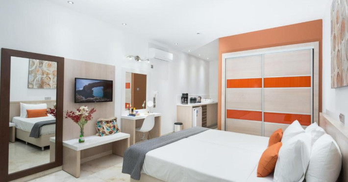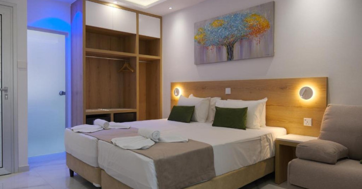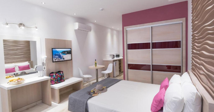 Apartamentele spațioase Loutsiana Deluxe sunt dotate cu aer condiționat și au balcon sau terasă mare și acces gratuit la internet WiFi. Unele unități includ o chicinetă utilată completă, iar toate apartamentele sunt bune cu fierbător electric, frigider și prăjitor de paine. In plus, unități au o zonă de relaxare cu TV LCD. La un cost suplimentar este disponibilă o cutie de valori.