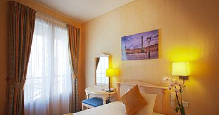 Near Louvre Museum. Youll be centrally located in Paris with a stay at Hôtel Louvre Sainte Anne, within a 15-minute walk of Palais Garnier and Louvre Museum. This hotel is 1.7 mi (2.7 km) from Champs-Ãlysées and 2.1 mi (3.3 km) from Luxembourg Gardens. Make yourself at home in one of the 20 guestrooms featuring minibars and LCD televisions. Complimentary wireless Internet access keeps you connected, and cable programming is available for your entertainment. Private bathrooms have hair dryers and slippers. Conveniences include safes and complimentary newspapers, as well as phones with free local calls. Grab a bite from the snack bar/deli, or stay in and take advantage of the hotels room service (during limited hours). Buffet breakfasts are available daily from 7:30 AM to 10:30 AM for a fee. Make use of convenient amenities such as complimentary wireless Internet access, concierge services, and babysitting (surcharge).Datorita dinamicitatii domeniului disponibilitatea ofertelor se modifica de la un moment la altul. De aceea ofertele sunt valabile in limita locurilor disponibile. Agentia nu este responsabila pentru eventualele neconcordante care pot aparea intre informatiile privind tarifele si alte detalii din site si informatiile primite in agentie. In aceste cazuri vor avea prioritate, intotdeauna, informatiile primite in agentie.