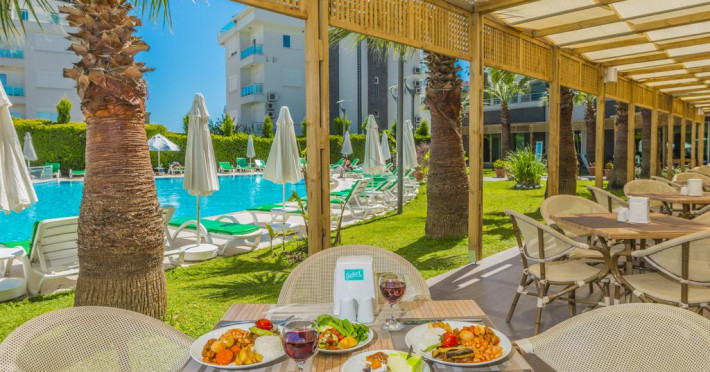Side Lowe Hotel se află la 1,2 km de Side și la 56 km de Aeroportul Antalya. La cerere proprietatea organizează transfer la/de la aeroport contra cost.
