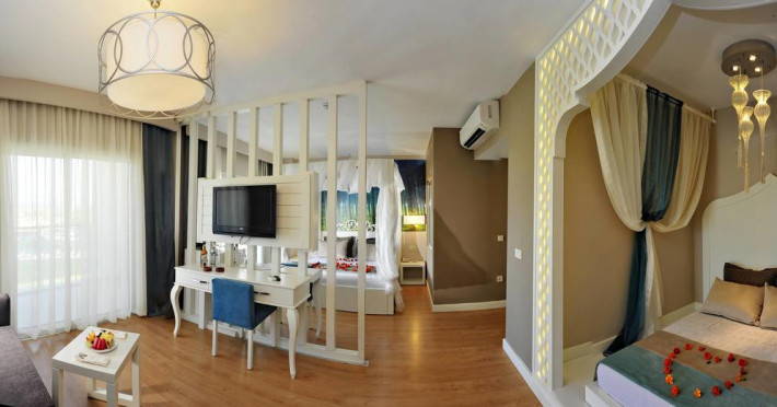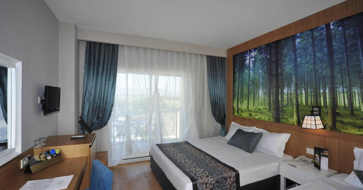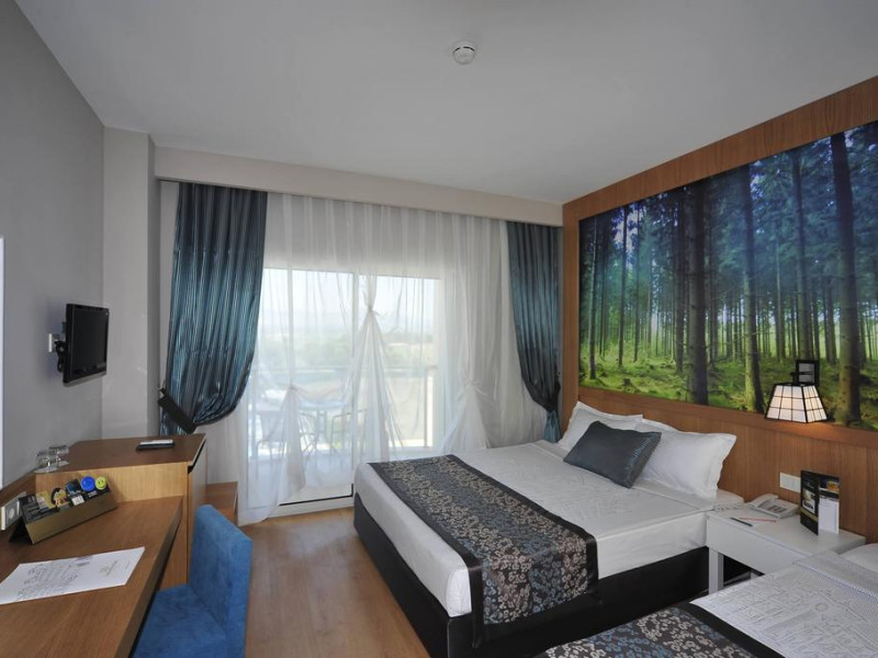 Hotelul este localizat in Side, la 65 km de aeroportul din Antalya si la 7 km de orasul Side. Hotelul a fost construit in 2012 si ofera cazare in doua cladiri de 6 etaje. Camerele hotelului sunt dotate modern si au facilitatile standard, uscator de par, televizor, mini-bar si aer conditionat centralizat. Acest complex are un restaurant principal si 3 restaurante a la carte cu specific italian, turcesc si mexican. Copii au o piscina exterioara cu topogan, loc de joaca si un mini club.Datorita dinamicitatii domeniului disponibilitatea ofertelor se modifica de la un moment la altul. De aceea ofertele sunt valabile in limita locurilor disponibile. Agentia nu este responsabila pentru eventualele neconcordante care pot aparea intre informatiile privind tarifele si alte detalii din site si informatiile primite in agentie. In aceste cazuri vor avea prioritate, intotdeauna, informatiile primite in agentie.