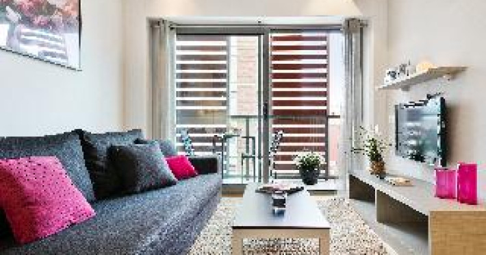 It is located in a privileged area in the neighbourhood of Poble Nou, an ancient district of Barcelona with the brightest of the Mediterranean environment, on the coast of Barcelona. It is just three minute walk from the beach and twenty minute walk from the Olympic port. The apartment is very comfortable and centrally located, where can find near shops, bars or restaurants. The furniture is modern and fully equipped; has all the necessary utensils for the kitchen. Features a balcony, free high-speed wifi, security in the building and weekly housekeeping. On the other hand, public transport in Barcelona offers a wide range of possibilities for sightseeing. You can access the subway, ten minutes away; and the bus, which communicates directly with the centre of the city, whose stop is just a minute walk. The check in is made in our Reception office at Passeig Calvell 45. A damage deposit of EUR 200 will be blocked on your credit cardt the arrival.It is located in a privileged area in the neighbourhood of Poble Nou, an ancient district of Barcelona with the brightest of the Mediterranean environment, on the coast of Barcelona. It is just three minute walk from the beach and twenty minute walk from the Olympic port. The apartment is very comfortable and centrally located, where can find near shops, bars or restaurants. The furniture is modern and fully equipped; has all the necessary utensils for the kitchen. Features a balcony, free high-speed wifi, security in the building and weekly housekeeping. On the other hand, public transport in Barcelona offers a wide range of possibilities for sightseeing. You can access the subway, ten minutes away; and the bus, which communicates directly with the centre of the city, whose stop is just a minute walk. The check in is made in our Reception office at Passeig Calvell 45. A damage deposit of EUR 200 will be blocked on your credit cardt the arrival.
