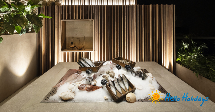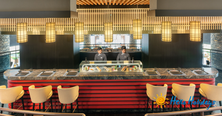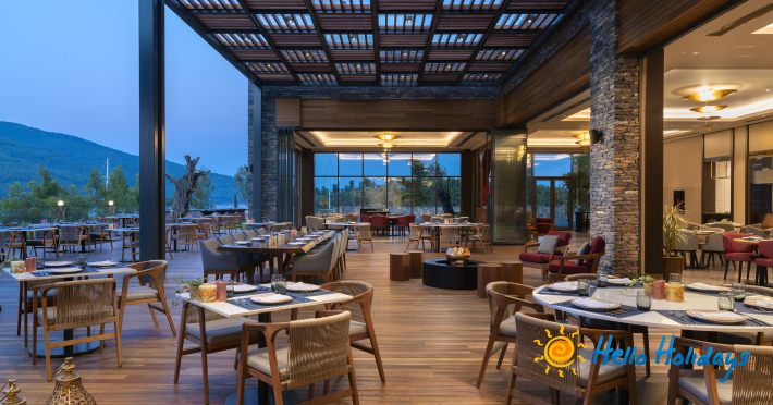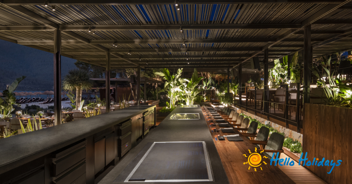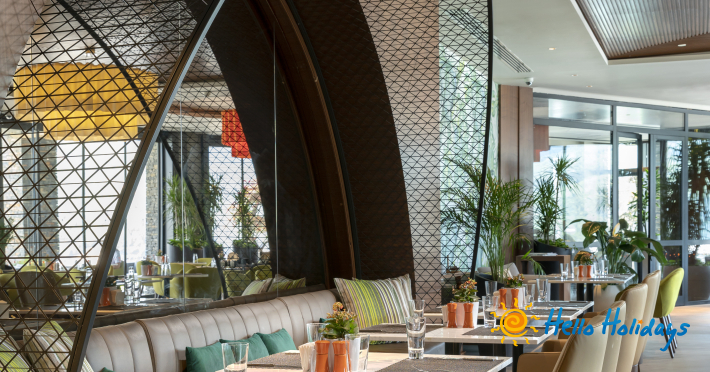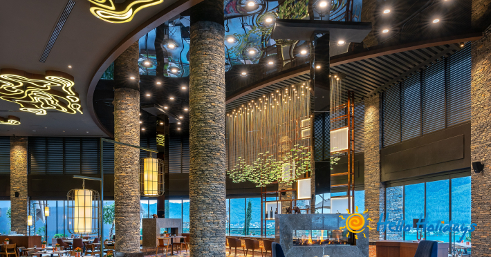 Hotelul își întâmpina clienții cu receptie, lobby, bucătărie specială a-la-carte din 9 bucătarii, cu meniuri variate pentru copii, 14 baruri, patisserie, cofetărie și gelaterie, Aqua park, centru wellness cu o suprafața de 1.200 mp, lecții centru fitness, program extensiv de yoga, antrenor personal pilates, activități speciale, mini-club și loc de joacă pentru copii, parcare, 3 plaje private.