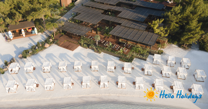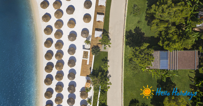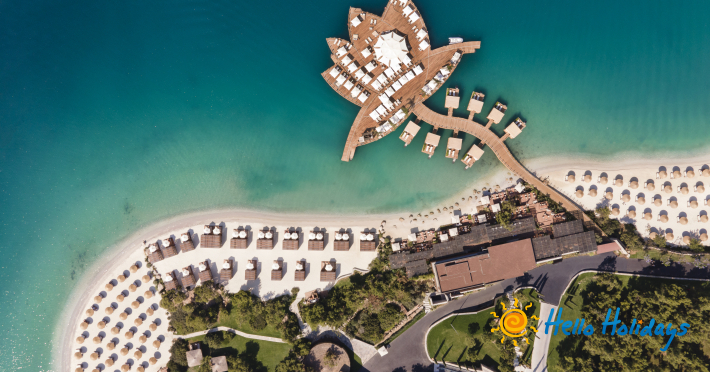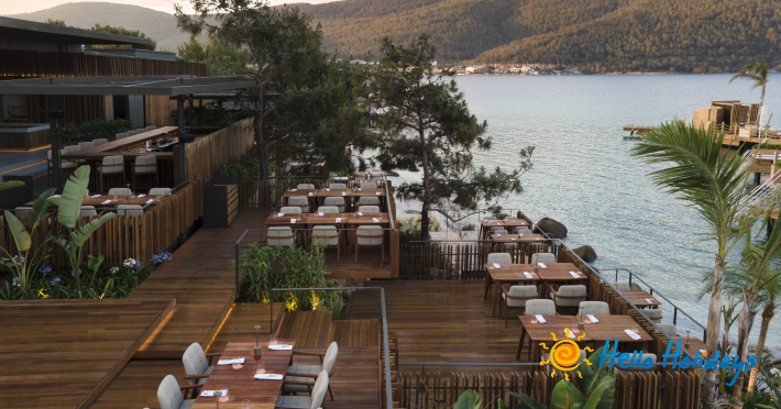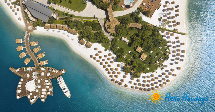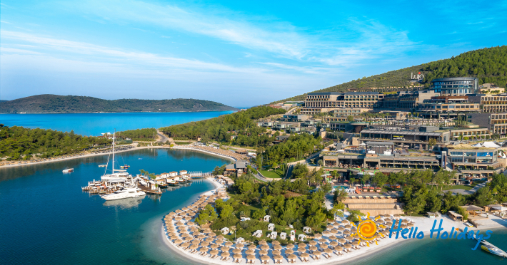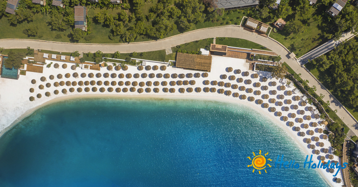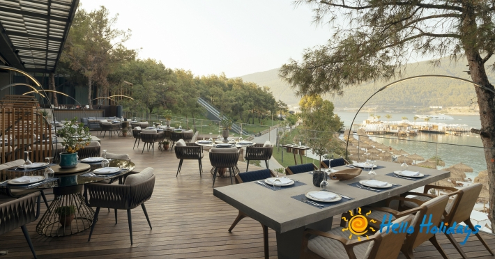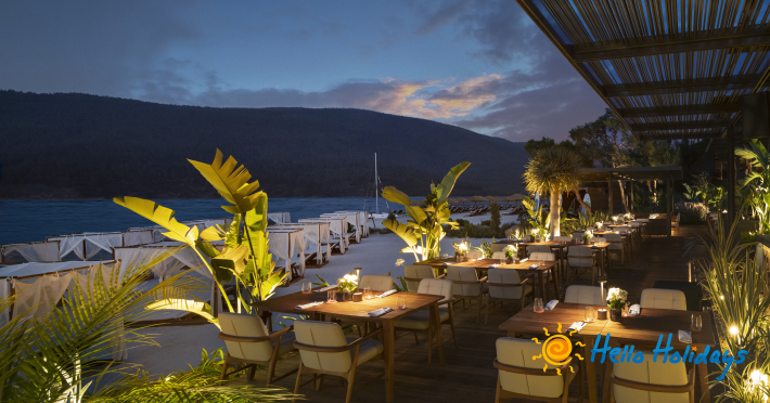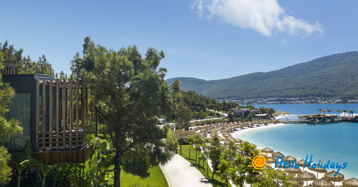 Hotelul este așezat pe o plajă privată deosebită, la o distanta de 20 km de centrul orasului Bodrum si la 15 km deaeroportul Milas.