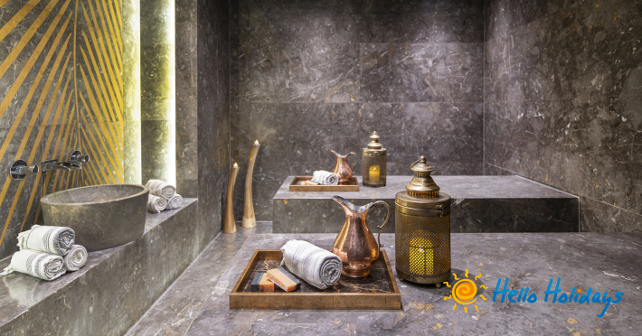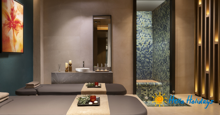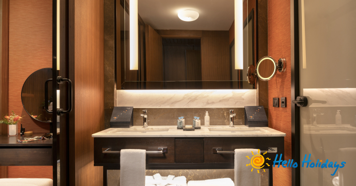 Camerele pun la dispoziția turiștilor aer condiționat, halate și papuci pentru baie, set cosmetice Bvlgari (pentru adulți și copii), băi cu uscător de păr, Tv sistem IPTV, seif, internet Wi-Fi, facilități pentru ceai și cafea, dressing, balcon/terasă.