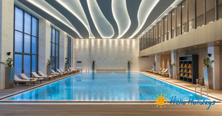 Hotelul dispune de 7 piscine (6 exterioare si 1 interioara; 1 piscina exterioara – doar adulti) + 2 piscine pentru copii (1 exterioara si 1 interioara). *Toate piscinele sunt cu apa proaspata. Incalzirea sezoniera este in aprilie-mai si octombrie.