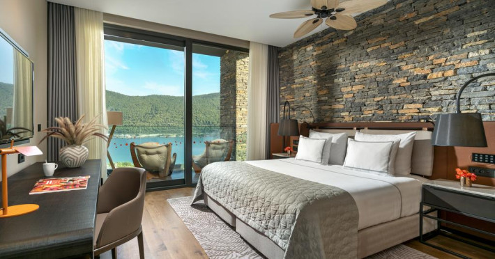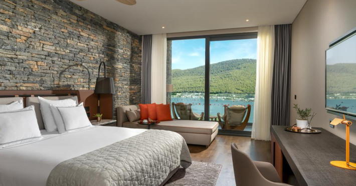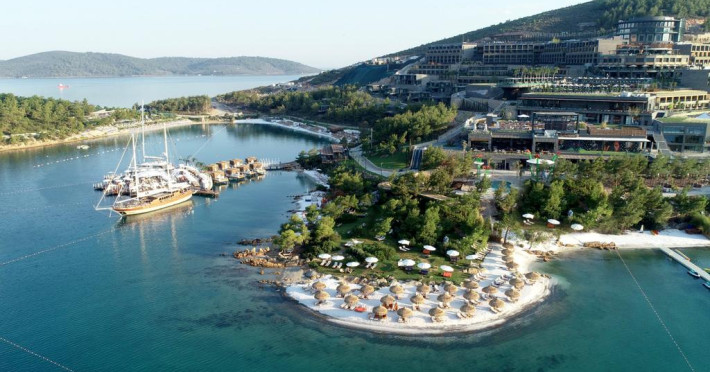 Hotelul este așezat pe o plajă privată deosebită, la 26 km de orașul Bodrum.