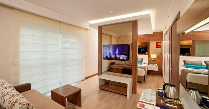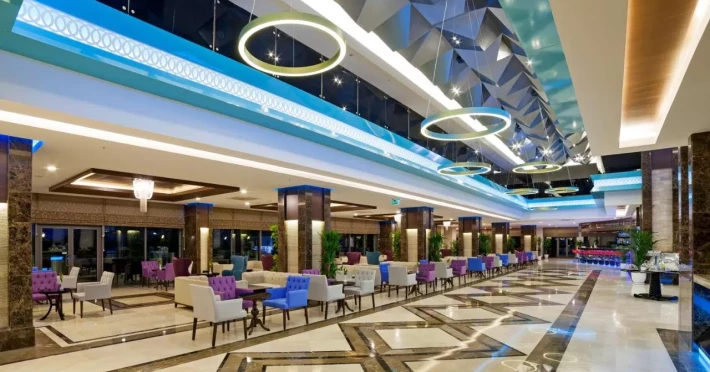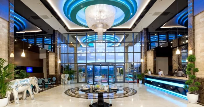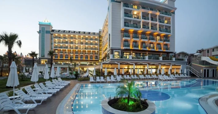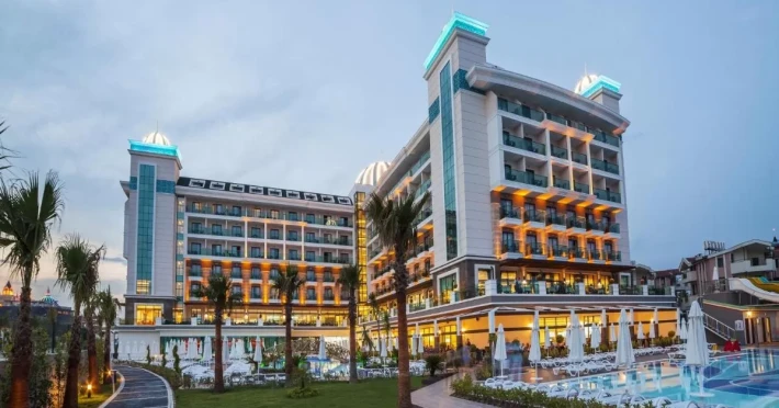 Hotelul pune la dispozitia turistilor: medic (la solicitare, contra cost), centru SPA, coafor (contra cost), lant de magazine, spalatorie (contra cost), sala de conferinte (120-170 pers.), internet Wi-Fi gratis, restaurant principal, 3 restaurante a la carte (italian, pescaresc si turcesc - cu rezervare prealabila, 1 masa la un restaurant pe sejur - gratuit), 3 baruri, 3 piscine exterioare, piscina interioara, 3 tobogane de apa (la anumite ore).