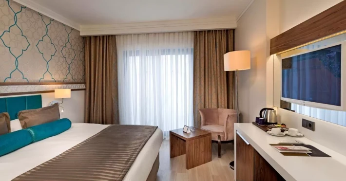 Camerele hotelului sunt dotate cu: telefon, TV satelit, seif, minibar, aer conditionat, baie cu cabina de dus, uscator de par, parchet, balcon, internet wi-fi.