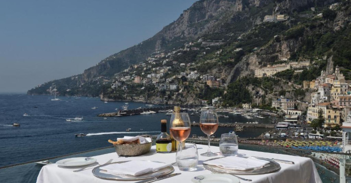 La pranz si cină, oaspeții pot savura delicatese locale la cele 2 restaurante, dintre care unul are vedere la tărm, iar celălalt la turnul vechi. Centrul localitătii Amalfi se află la doar 200 de metri, iar langă hotel există o statie de autobuz public.