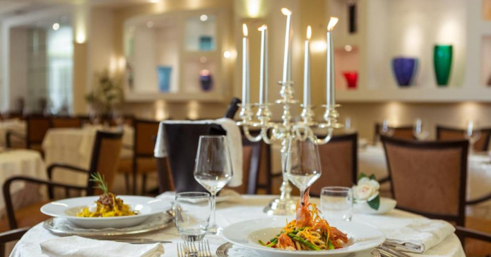 At lunch and dinner you can enjoy gourmet dishes prepared by our Chef with à la carte service, served in the elegant restaurant or on the bright veranda and poolside garden.