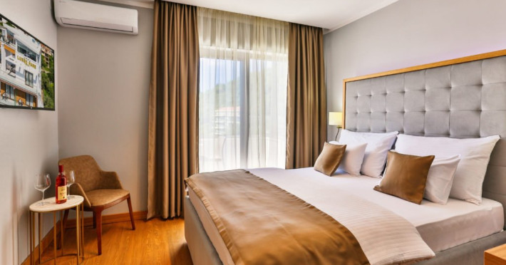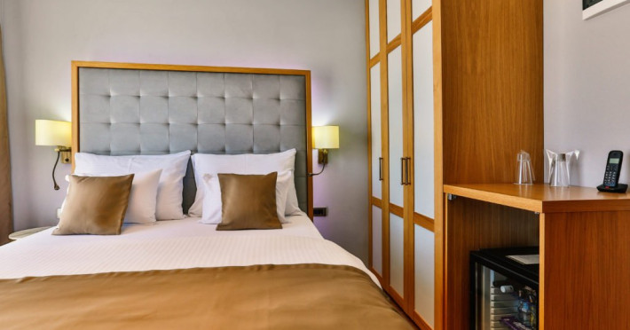 - Hotelul ofera un total de 30 de camere duble moderne, cu optiunea unui pat suplimentar. Toate camerele sunt dotate cu aer conditionat, TV cu ecran plat si canale prin satelit, minibar, seif si baie privata cu dus si uscator de par.