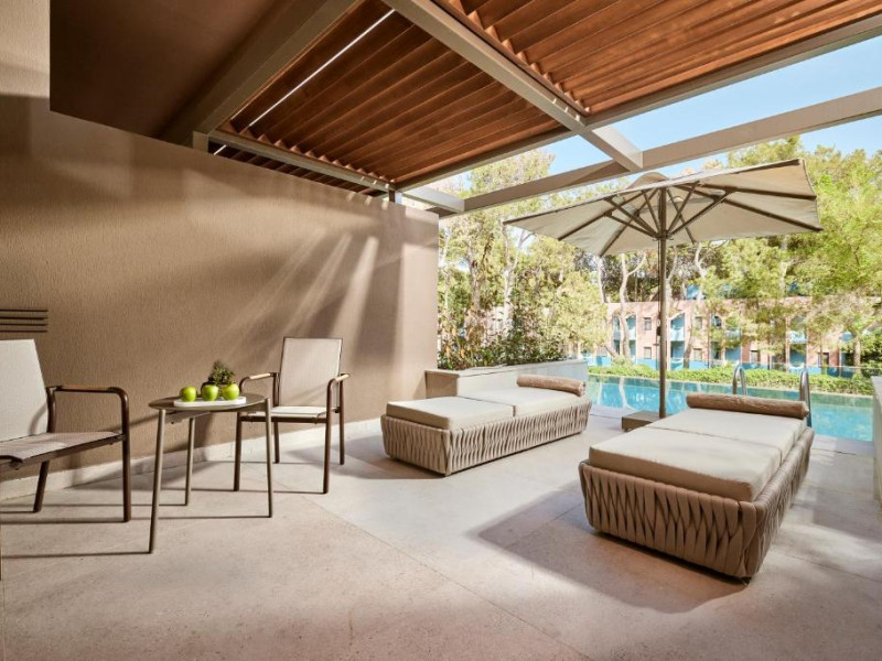 Oaspeții se pot bucura de 5 piscine exterioare, inclusiv piscine cu tobogane acvatice pentru copii și adulți. Complexul dispune de un centru spa elegant cu baie turcească, saună și servicii de masaj, precum și de un centru fitness complet echipat.