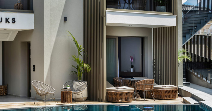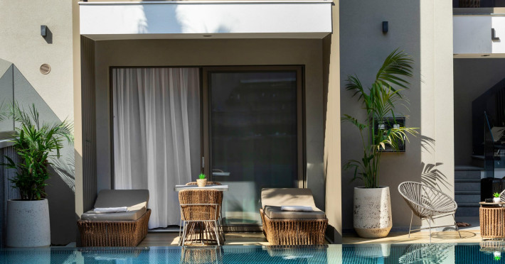 Located close to the sunny shores of Halkidiki, Luuks Luxury Accommodation offers you a magical escape, where modern luxury meets traditional Greek hospitality. Indulge in a truly personalized experience as our boutique accommodation features a range of well-appointed rooms. Each accommodation has been meticulously designed to provide maximum comfort, with plush bedding, modern amenities and private balconies or terraces. A delectable gastronomic breakfast buffet awaits, providing the ideal start to your day, ensuring you are energized and ready for all your adventures. At the poolside bar, guests can enjoy a delightful variety of refreshing drinks and cocktails, carefully designed to suit their tastes and preferences. At Luuks Luxury Accommodation, we pride ourselves on offering personalized service and personalized experiences. Whether you want to embark on a guided exploration of the charming streets of Chanioti or indulge in a boat trip to discover hidden coves, our dedicated team is at your service.Chanioti offers a range of attractions, from archaeological sites to vibrant nightlife, ensuring that every visitor's desires are fulfilled.