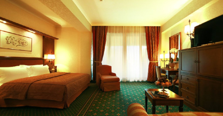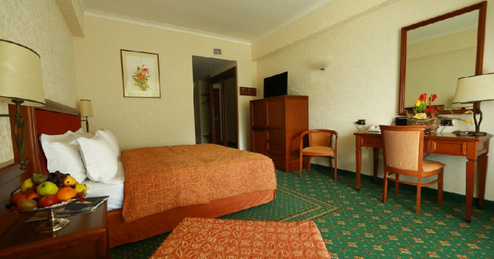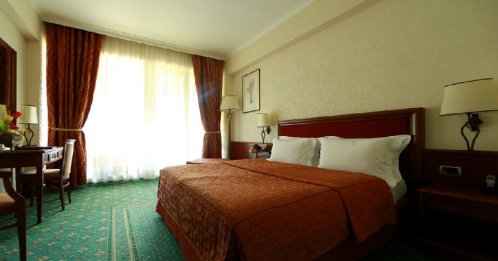 18 Camere Standard Twin, 21 Camere Standard Matrimoniale, 3 Camere Executive Matrimoniale, 2 Junior Suite (Apartamente), 3 Mountain Suite (Apartamente), 3 LuxGarden Suite (Apartamente). Servicii incluse in pretul camerei: receptie 24 de ore, trezire, transport bagaje, seif, transmitere mesaje, ziare, curierat, informatii culturale si turistice, internet, rezervare de bilete, apelare taxi, parcare subterana.