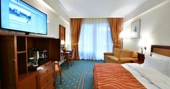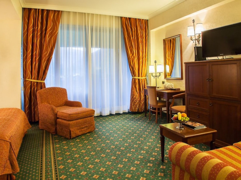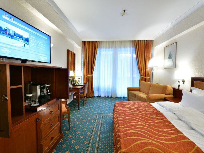 Lux Garden is located at the bottom of the ski slope, close to the gondola station of Azuga in Prahova Valley. Free public WiFi and free guarded parking are available. Guests benefit from free access to the spa center with a pool, dry and wet saunas and a fitness room. Ski passes can be requested at the front desk for an extra fee, and snowboard and ski classes can also be arranged. Located at an altitude of 3258 feet above sea level and surrounded by the Bucegi Mountains, Lux Garden offers rooms with mountain view and balconies. Guests can enjoy skiing, snowboarding and sleighing and in the summertime go mountain biking or hiking. The property can recommend ski equipment rentals and ski and snowboarding schools. The Lux Garden features a restaurant with international cuisine, a piano bar and a terrace with view over the Bucegi Mountains. Delicious desserts and fine drinks are served there, and you can taste wines from an extensive collection. Hotel Lux is 19 mi away from Bran Castle, which is known as Draculas Castle, and 12 mi from the Peles Castle in Sinaia. Bucharest International airport is 77 mi away, and a paid airport transfer can be arranged with the property.WiFi is available in all areas and is free of charge. Free private parking is available on site (reservation is not needed). Pets are not allowed. Children of all ages are allowed. Children 3 and under stay for free when using an available crib. Children 6 and under stay for free when using an existing bed. Children from 7 to 11 years old stay for 45Â lei per person, per night when using an existing bed. Children from 12 to 17 years old stay for 165Â lei per person, per night when using an existing bed. Children from 3 to 17 years old stay for 75Â lei per person, per night when using an available extra bed. Any type of extra bed or crib is upon request and needs to be confirmed by management. Additional fees are not calculated automatically in the total cost and will have to be paid for separately during your stay.Checkin Time: 17:00Checkout End Time: 12:00Hotel important information: In response to the coronavirus (COVID-19), additional safety and sanitation measures are in effect at this property. Due to the coronavirus (COVID-19), this property is taking steps to protect the safety of guests and staff. Certain services and amenities may be reduced or unavailable as a result. Spa and gym facilities at this property are unavailable due to the coronavirus (COVID-19).Datorita dinamicitatii domeniului disponibilitatea ofertelor se modifica de la un moment la altul. De aceea ofertele sunt valabile in limita locurilor disponibile. Agentia nu este responsabila pentru eventualele neconcordante care pot aparea intre informatiile privind tarifele si alte detalii din site si informatiile primite in agentie. In aceste cazuri vor avea prioritate, intotdeauna, informatiile primite in agentie.