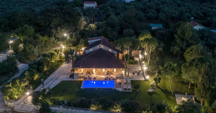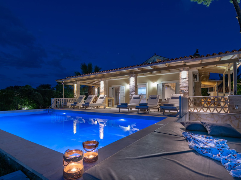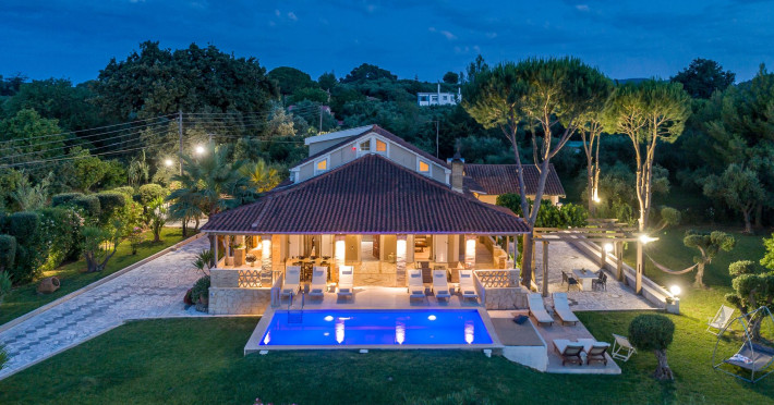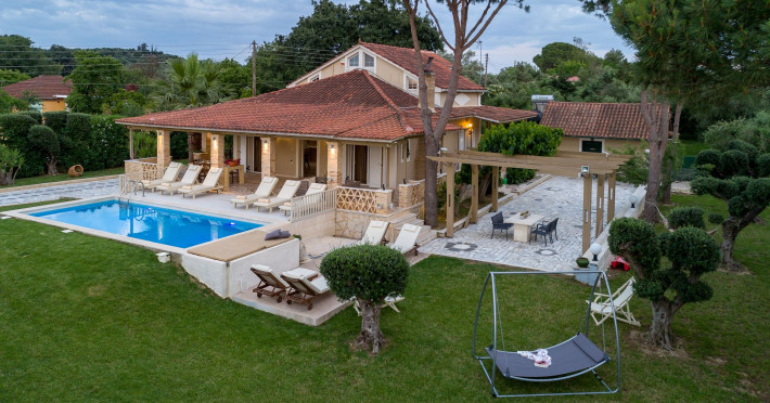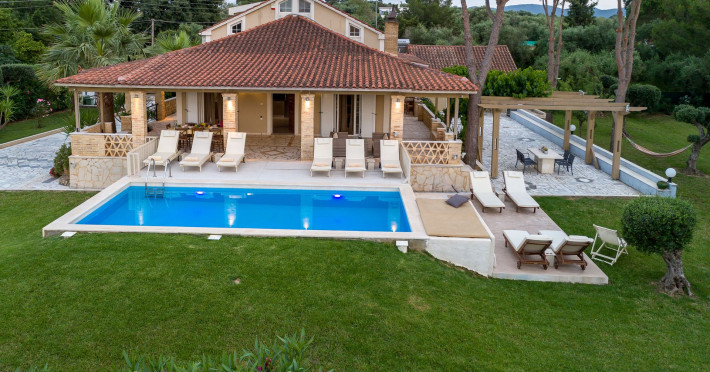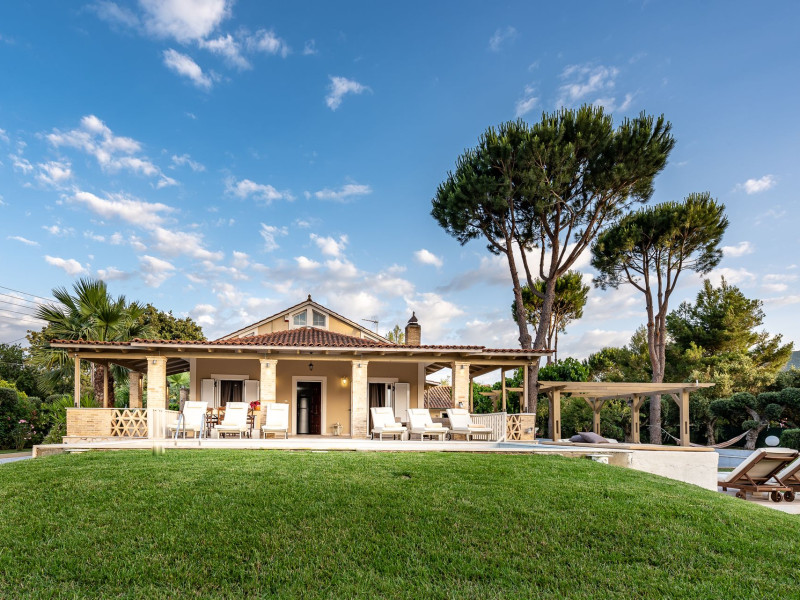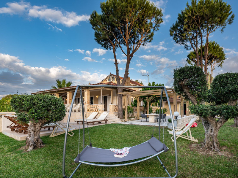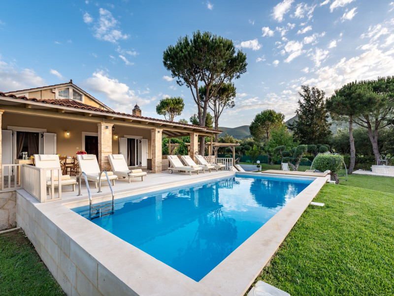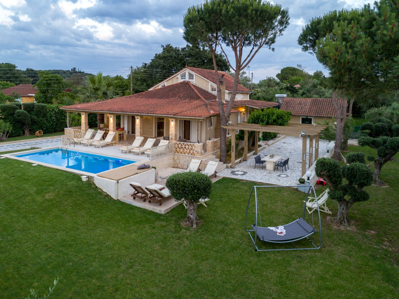 The Luxury Dream Villa is built in a private plot (measuring 3500 square meters), in the quiet village of Pantokratoras.The location is ideal, as it is quiet and peaceful, but also close to the famous tourist resort of Laganas, just 2 kilometers away. The villa is surrounded by well kept lawns, olive trees and your own private little orchard which includes lemon trees, orange trees and pomegranate trees.Outside, you will also find a large veranda, a sun terrace, a shaded dining area, a swimming pool with sun loungers and plenty of room for children to play.Spend your days leisurely by the pool soaking up some sun and enjoy the cool evening breeze on the veranda while sipping a drink or dining al fresco.The Luxury Dream Villa is built in a private plot (measuring 3500 square meters), in the quiet village of Pantokratoras.The location is ideal, as it is quiet and peaceful, but also close to the famous tourist resort of Laganas, just 2 kilometers away. The villa is surrounded by well kept lawns, olive trees and your own private little orchard which includes lemon trees, orange trees and pomegranate trees.Outside, you will also find a large veranda, a sun terrace, a shaded dining area, a swimming pool with sun loungers and plenty of room for children to play.Spend your days leisurely by the pool soaking up some sun and enjoy the cool evening breeze on the veranda while sipping a drink or dining al fresco.