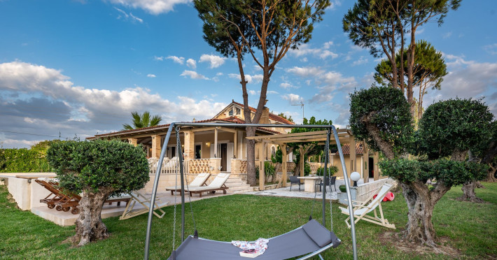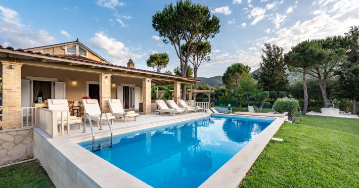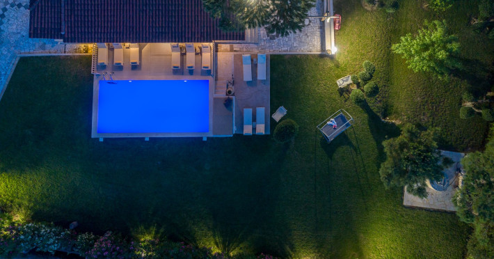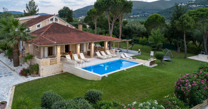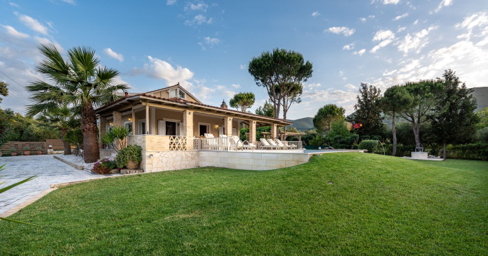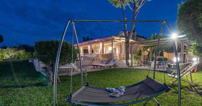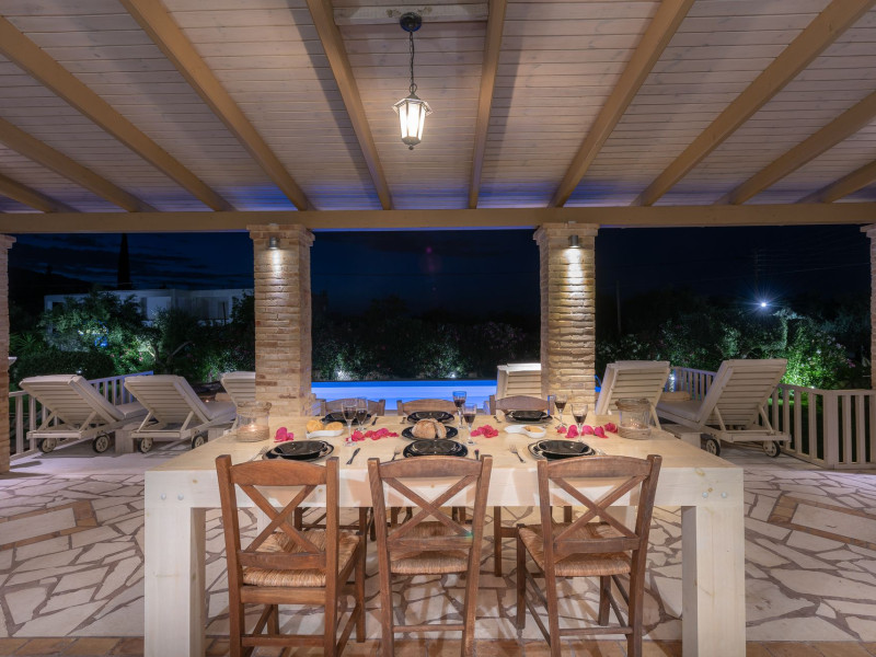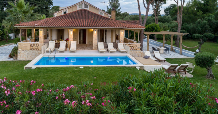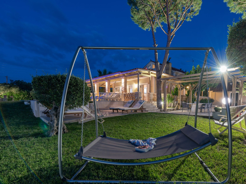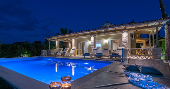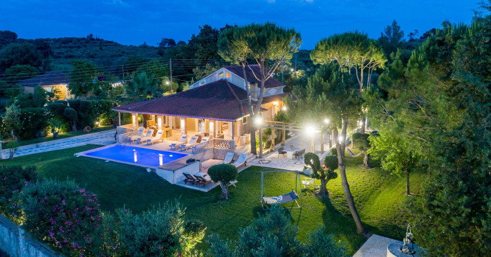 The Luxury Dream Villa is built in a private plot (measuring 3500 square meters), in the quiet village of Pantokratoras.The location is ideal, as it is quiet and peaceful, but also close to the famous tourist resort of Laganas, just 2 kilometers away. The villa is surrounded by well kept lawns, olive trees and your own private little orchard which includes lemon trees, orange trees and pomegranate trees.Outside, you will also find a large veranda, a sun terrace, a shaded dining area, a swimming pool with sun loungers and plenty of room for children to play.Spend your days leisurely by the pool soaking up some sun and enjoy the cool evening breeze on the veranda while sipping a drink or dining al fresco.The Luxury Dream Villa is built in a private plot (measuring 3500 square meters), in the quiet village of Pantokratoras.The location is ideal, as it is quiet and peaceful, but also close to the famous tourist resort of Laganas, just 2 kilometers away. The villa is surrounded by well kept lawns, olive trees and your own private little orchard which includes lemon trees, orange trees and pomegranate trees.Outside, you will also find a large veranda, a sun terrace, a shaded dining area, a swimming pool with sun loungers and plenty of room for children to play.Spend your days leisurely by the pool soaking up some sun and enjoy the cool evening breeze on the veranda while sipping a drink or dining al fresco.