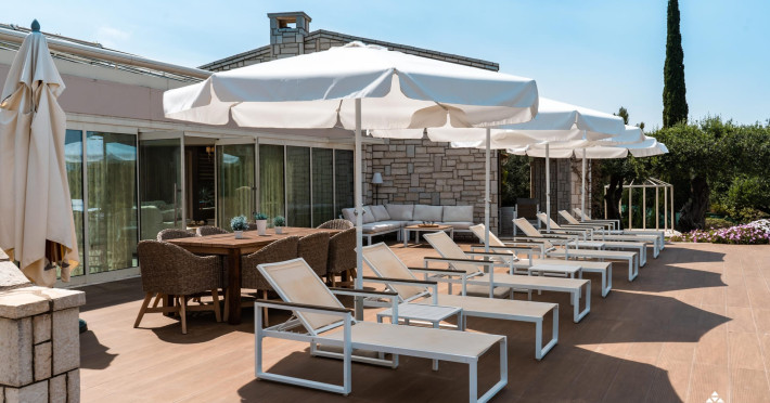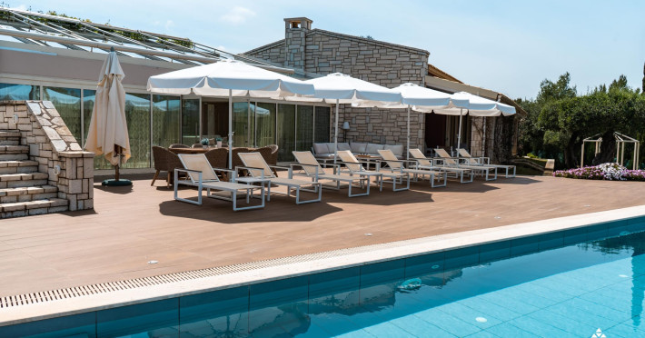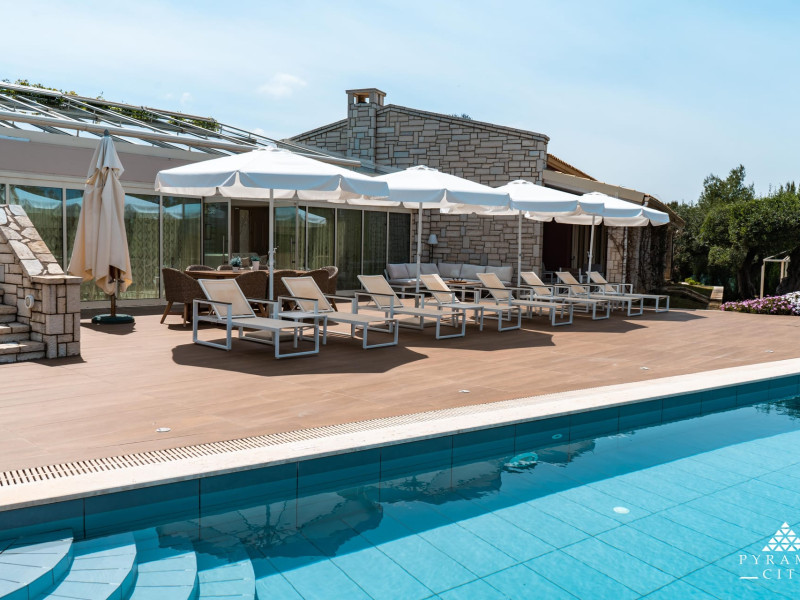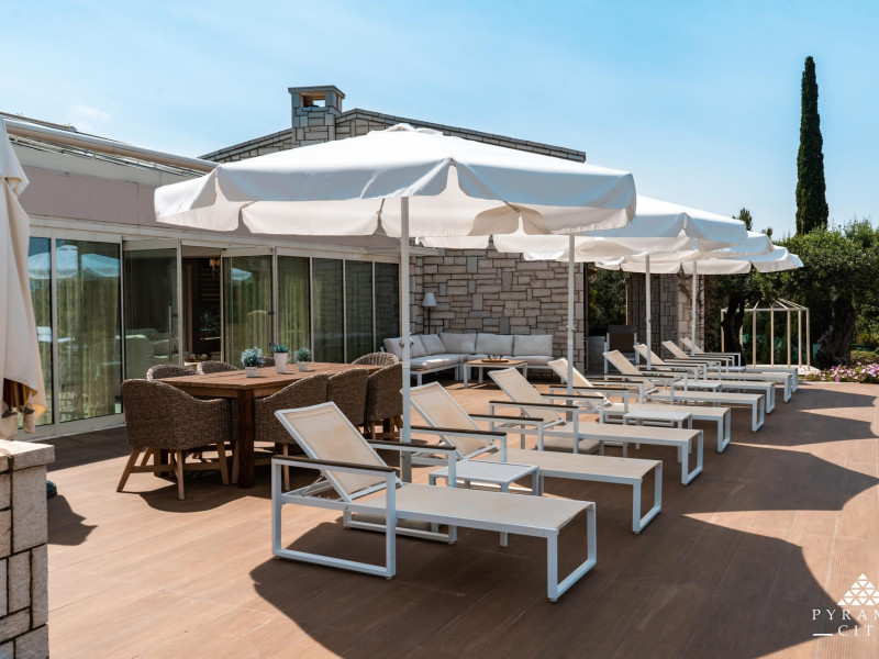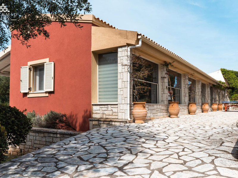 Villa Aphrodite (single-story, raised ground floor, for up to 11 guests)Villa Aphrodite, built in the style of an old Corfiot palace, is a modern combination of two separate houses that interconnect through a large "glass" kitchen-living room. This luxurious accommodation is an ideal choice for large families or large groups traveling together!It is located in the northeast of our settlement, within walking distance of the Jupiter and Poseidon villas & the Pyramid Seaside facilities, as well as the surrounding beaches! It offers views of unparalleled beauty that stretch from northern Corfu and the surrounding verdant mountain slopes to the mountains of Albania!Villa Aphrodite (single-story, raised ground floor, for up to 11 guests)Villa Aphrodite, built in the style of an old Corfiot palace, is a modern combination of two separate houses that interconnect through a large "glass" kitchen-living room. This luxurious accommodation is an ideal choice for large families or large groups traveling together!It is located in the northeast of our settlement, within walking distance of the Jupiter and Poseidon villas & the Pyramid Seaside facilities, as well as the surrounding beaches! It offers views of unparalleled beauty that stretch from northern Corfu and the surrounding verdant mountain slopes to the mountains of Albania!