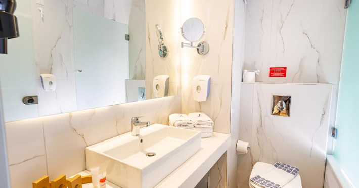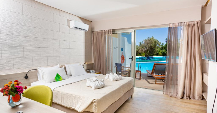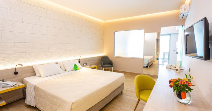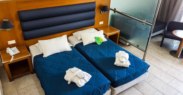 Unele camere au balcon cu vedere la mare sau la piscină. În camere există baie cu cadă sau duș ce are în dotare foehn și articole de toaletă gratuite. Fiecare cameră dispune de cană pentru prepararea apei calde. Oaspeții pot solicita serviciul de room service pentru a servi masa sau diverse băuturi. Camerele confortabile de la Lydia Maris au pardoseală de gresie/ marmură, aer condiționat, Tv cu canale prin satelit și seif. Oaspeții au acces gratuit la serviciul Wi-fi în camere. Curățenia in cameră se face zilnic. Anumite camere au cadă cu hidromasaj care asigură un plus de confort și răsfăț. Fiecare unitate de cazare are frigider. Proprietatea oferă camere pentru familie cu o suprafață mai mare și un număr mai mare de paturi față de cele standard. Se pot rezerva de asemenea camere pentru nefumători.