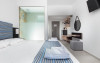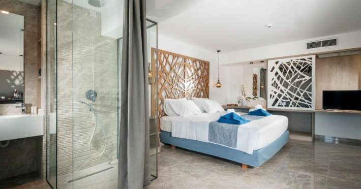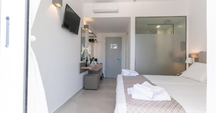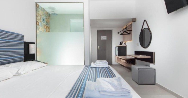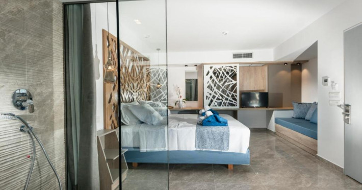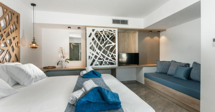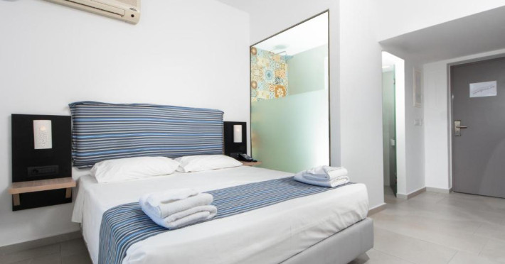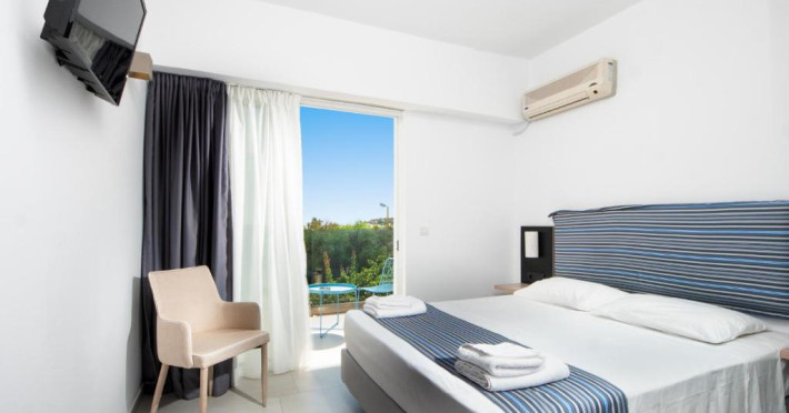 Sunt disponibile 155 camere. În camere există baie cu cadă sau duș ce are în dotare foehn și articole de toaletă gratuite. Fiecare cameră dispune de cană pentru prepararea apei calde. Oaspeții pot solicita serviciul de room service pentru a servi masa sau diverse băuturi. Unele camere au balcon cu vedere la mare sau la grădină. Camerele confortabile de la Lymberia au pardoseală de gresie/ marmură, aer condiționat, Tv cu canale prin satelit și seif. Curățenia in cameră se face zilnic. Anumite camere au cadă cu hidromasaj care asigură un plus de confort și răsfăț. Fiecare unitate de cazare are frigider.