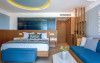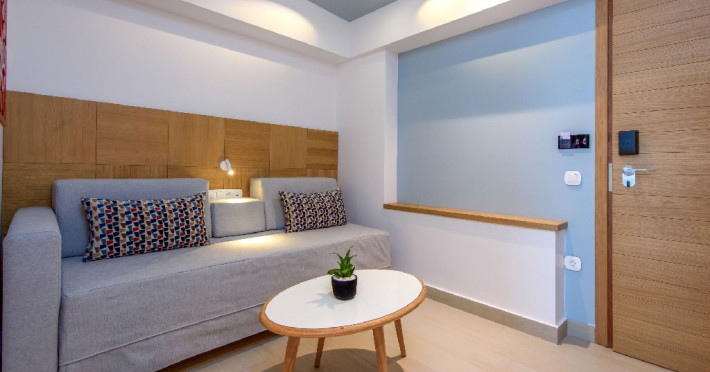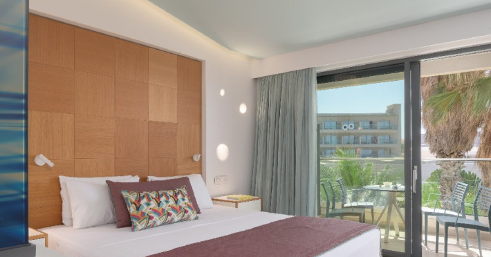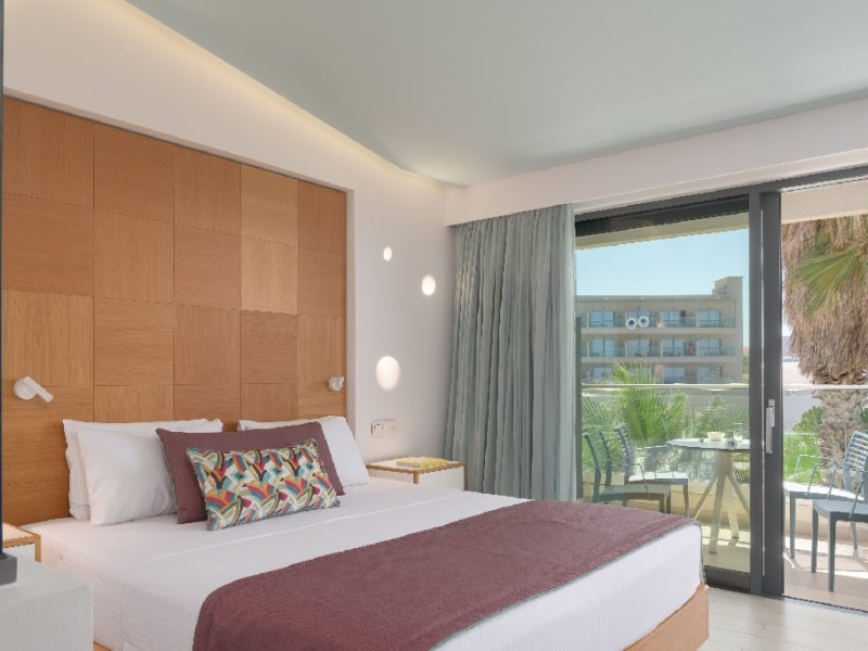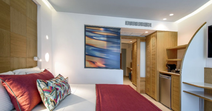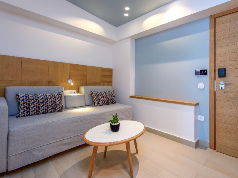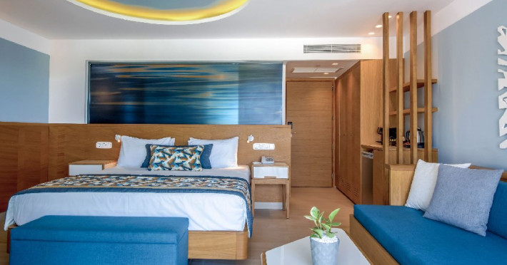 Dotari camera: Lyttos Mare ofera o varietate de optiuni de cazare elegante si spatioase, amenajate cu accente moderne si finisaje premium. Camerele sunt dotate cu aer conditionat, Wi-Fi, televizor, seif si facilitati de lux pentru un confort sporit. Designul interior imbina stilul contemporan cu elemente rafinate, oferind un ambient relaxant si sofisticat.