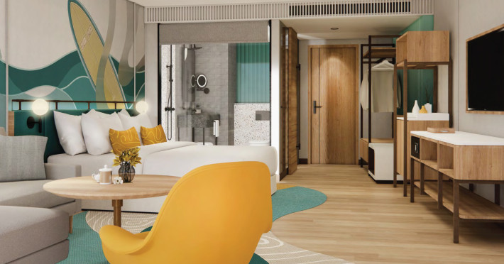 The 5 star hotel M SOCIAL HOTEL PHUKET is situated about 34 km from the airport. The air-conditioned 5 star hotel is equipped with a 24h reception, Wi-Fi, a lift, a shop, a hairdresser, a jacuzzi as well as parking spaces. In the outdoor area you will find a pool that is open seasonally. There is also a laundry service. For your comfort there is a concierge service. For conventions and other business meetings, the hotel offers a business centre. If you want to explore the holiday region, you can use the car rental service close to the hotel. Euro/Master Card, JCB and Visa are accepted as means of payment. Due to its barrier-free facilities , such as barrier-free entrances, the hotel is also suitable for wheelchair users. Catering Breakfast is offered continental, from the buffet or à la carte. Your physical well-being is catered for by the cafeteria. Sports & Leisure To keep your fitness up on holiday, there is a gym for guests to use. A sauna awaits you in the spa area. Additional information The 6-storey accommodation, last renovated in 2023, has a total of 418 rooms.The 5 star hotel M SOCIAL HOTEL PHUKET is situated about 34 km from the airport. The air-conditioned 5 star hotel is equipped with a 24h reception, Wi-Fi, a lift, a shop, a hairdresser, a jacuzzi as well as parking spaces. In the outdoor area you will find a pool that is open seasonally. There is also a laundry service. For your comfort there is a concierge service. For conventions and other business meetings, the hotel offers a business centre. If you want to explore the holiday region, you can use the car rental service close to the hotel. Euro/Master Card, JCB and Visa are accepted as means of payment. Due to its barrier-free facilities , such as barrier-free entrances, the hotel is also suitable for wheelchair users. Catering Breakfast is offered continental, from the buffet or à la carte. Your physical well-being is catered for by the cafeteria. Sports & Leisure To keep your fitness up on holiday, there is a gym for guests to use. A sauna awaits you in the spa area. Additional information The 6-storey accommodation, last renovated in 2023, has a total of 418 rooms.