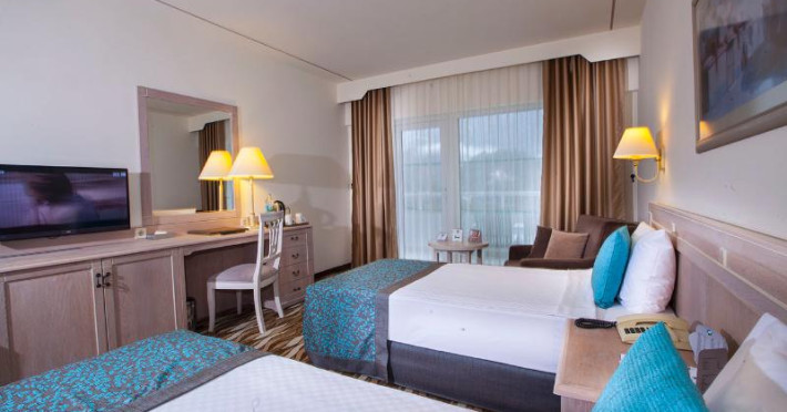 The resort welcomes guests in an 8-storey building with a lift and 350 non-smoking rooms. The friendly staff at the reception desk in the lobby are happy to answer any questions. Services such as a baggage storage service and a safe ensure a comfortable stay. Wireless internet access in public areas allows guests to stay connected. The tour desk offers assistance with booking excursions. The resort has wheelchair-accessible facilities. A number of shops, including a supermarket, are great for shopping or just browsing. The grounds of the complex feature a playground and a lovely garden. Additional amenities include a TV room and a playroom. Parking spaces are available to guests travelling by car. Other services include a 24-hour security service, a childcare service, a car hire service, medical assistance, a transfer service, room service, a laundry service, a hairdresser and a page service. Cyclists can make use of the bicycle storage area and hire service (for a fee).Datorita dinamicitatii domeniului disponibilitatea ofertelor se modifica de la un moment la altul. De aceea ofertele sunt valabile in limita locurilor disponibile. Agentia nu este responsabila pentru eventualele neconcordante care pot aparea intre informatiile privind tarifele si alte detalii din site si informatiile primite in agentie. In aceste cazuri vor avea prioritate, intotdeauna, informatiile primite in agentie.