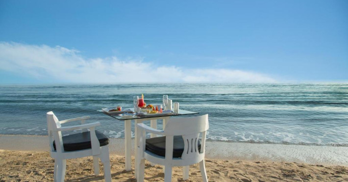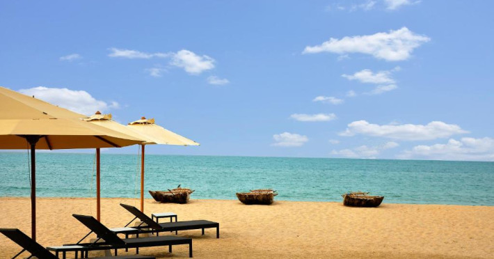 Plaja privată a resortului, cu nisip fin și ape calme, este ideală pentru inot și relaxare, fiind una dintre cele mai frumoase din zona de est a Sri Lanka.