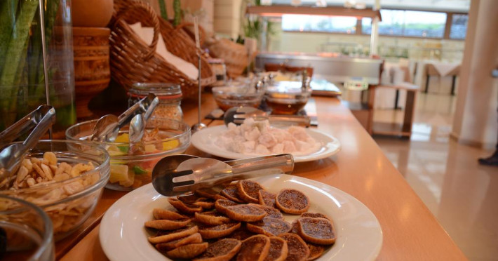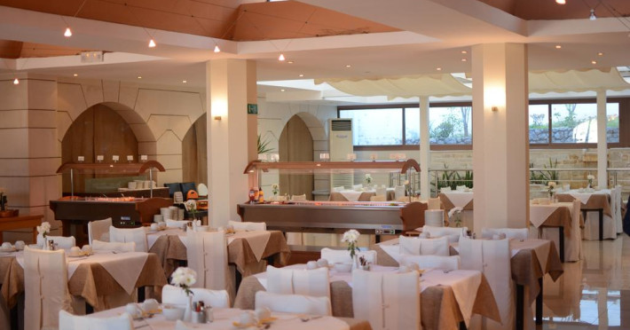 La Macaris Suites & Spa oaspeții au la dispoziție un restaurant care servește mâncare à la carte. Preparate din bucătăria grecească și internațională așteaptă să fie degustate în fiecare zi la micul dejun, prânz și cină. Masa poate fi servită atât în interior, cît si în aer liber, pe terasă, în funcție de vreme. Oaspeţii pot avea diverse băuturi răcoritoare sau alcoolice la bar.