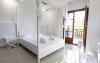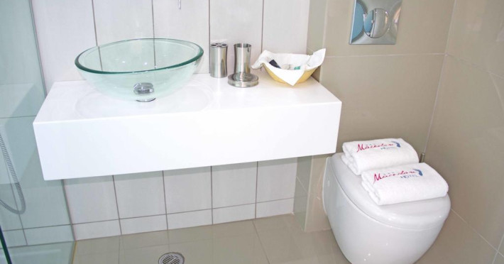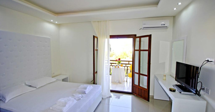 Sunt disponibile 26 camere. Unele camere au balcon cu vedere la mare sau la piscină. Fiecare cameră dispune de minibar și cană pentru preparare apă caldă. În camere există baie cu cadă sau duș, foehn, articole de toaletă gratuite, precum și halate de baie și papuci. Camerele confortabile de la Macedon Hotel au pardoseală de gresie/ marmură, aer condiționat, Tv cu canale prin satelit și seif. Curățenia in cameră se poate asigura zilnic, contra cost. Fiecare unitate de cazare are frigider. Proprietatea oferă camere pentru familie cu o suprafață mai mare și un număr mai mare de paturi față de cele standard. Se pot rezerva de asemenea camere pentru nefumători.
