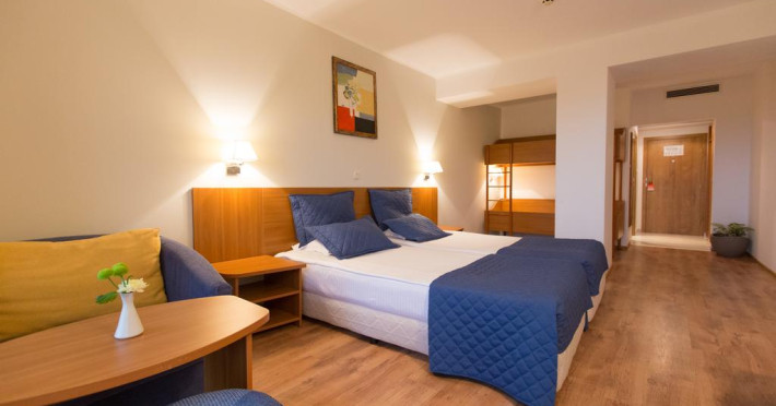 Hotelul dispune de 242 de camere impartite dupa cum urmeaza: 162 de camere duble, 10 single, 20 de camere family, 20 de apartamente junior si 10 apartamente standard. Toate camerele au in dotare grup sanitar propriu, telefon, TV satelit, seif, feohn, aer conditionat si balcon.