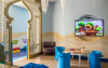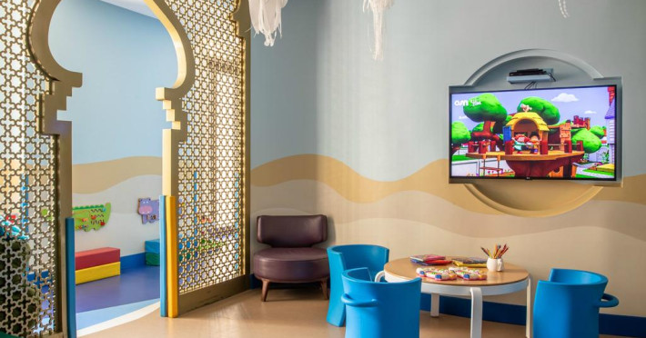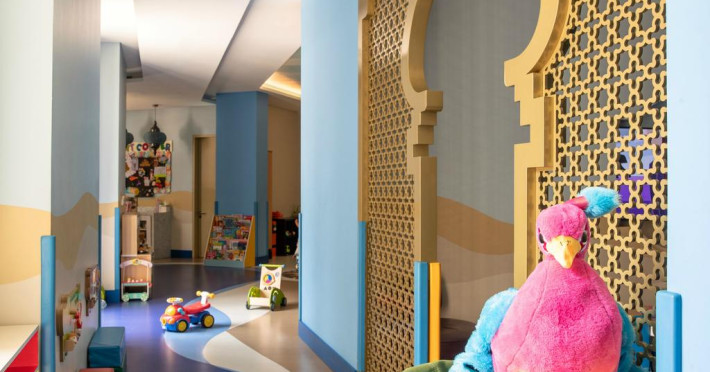 Pentru orele toride cei mici pot opta pentru zona de joacă amenajată la interior, unde există jocuri și muzică.