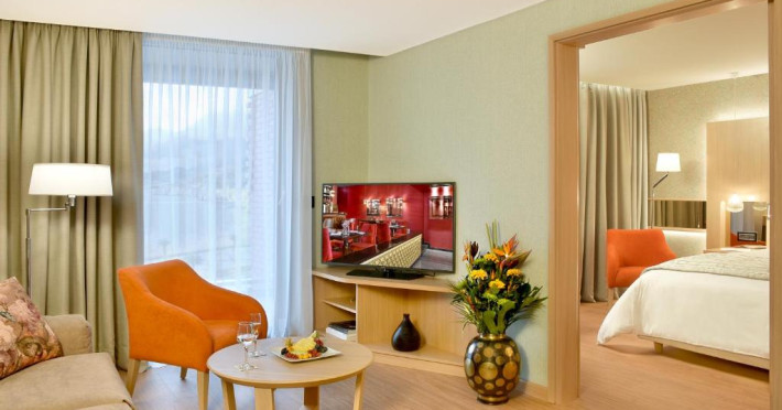 Toate camerele sunt decorate modern și au aer condiționat, minibar, TV LCD cu canale prin satelit și balcon privat. Cele mai multe camere oferă vedere panoramică la mare. Oaspeții au la dispoziție WiFi gratuit, precum și parcare privată gratuită.