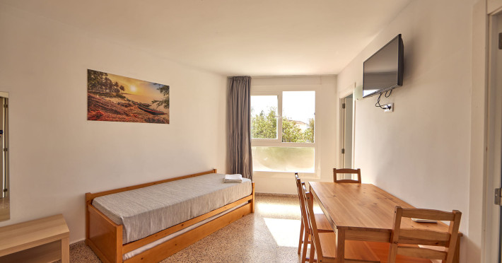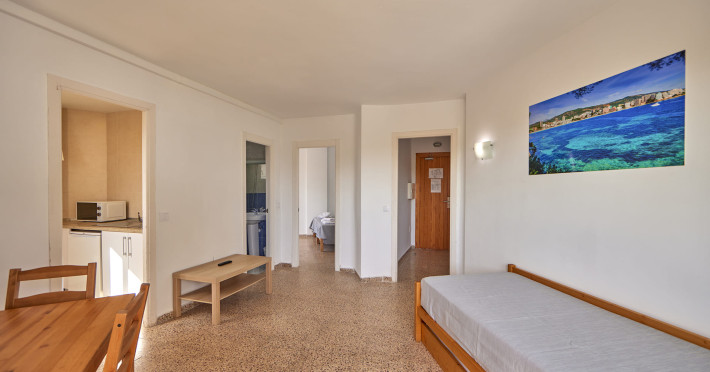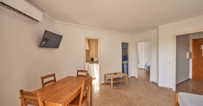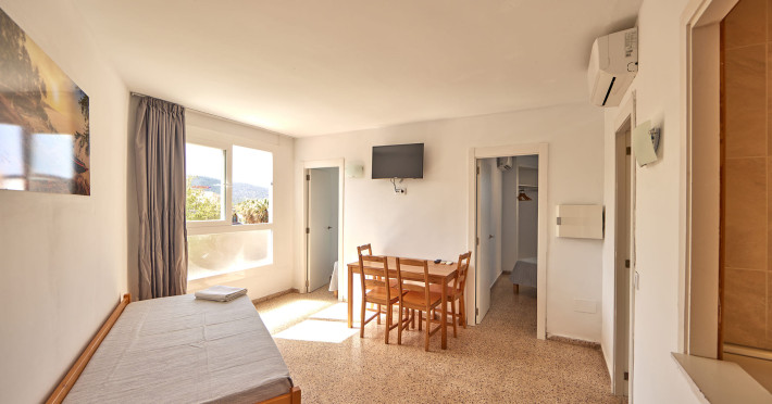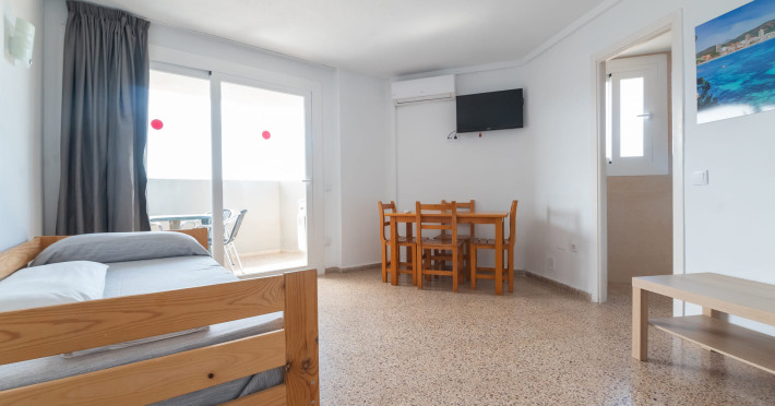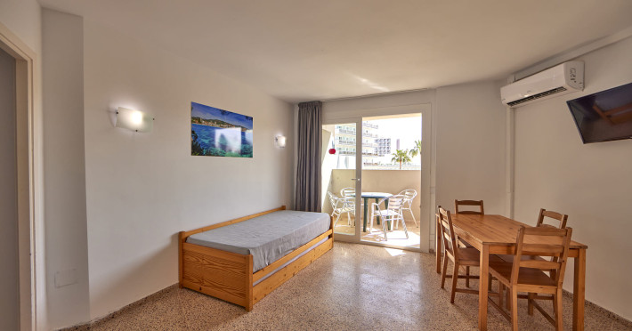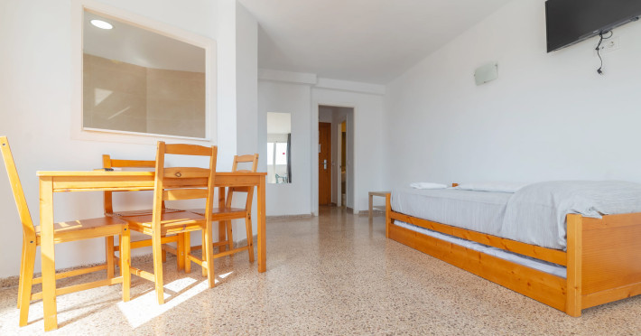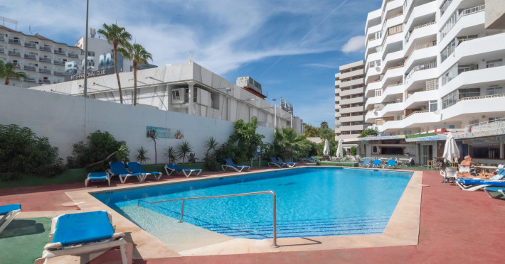 The aparthotel Magalluf Playa Apartments Adults Only is located approximately 200 m from a public sandy beach. The nearest restaurants and bars can be reached in a few minutes on foot. The old town is around 10 km away. The nearest shops you can reach within around 100 m, a supermarket is just a few metres away from the hotel. There is a shuttle between the hotel and the airport (for a fee). Nearby there is a disco, a leisure park and a waterpark which offer entertainment in high season. Near the beach there is a promenade where you can go for a stroll. The hotel has a 24h reception (check-in is possible around the clock), internet access as well as 2 lifts. In the outdoor area you will find a supervised pool, where sun umbrellas are available for free. Furthermore, you can relax outdoors on a terrace. You can spend social time at the beach club. You can store your luggage in the hotel's storage room. If you want to explore the holiday region, you can use the car and motorbike rental service close to the hotel. The hotel requires that all guests pay a deposit upon arrival. Euro/Master Card and Visa are accepted as means of payment. Catering Your physical well-being is catered for by the pool bar. Distances
