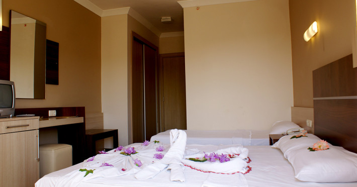 Hotelul are un numar total de 175 intr-o cladire principala. Toate camerele sunt standard (27 mp, un dormitor, o baie, 2+1pax) dotate cu uscator de par, aer conditionat split, telefon direct, mini bar (contra cost), seif (contra cost), TV prin satelit si canale de muzica, balcon.