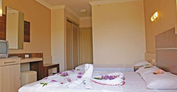 Construit in anul 2007, cu o suprafata totala de 6.500 mp, hotelul dispune de o cladire cu 4 etaje, avand 174 camere standard (suprafata 27 mp). Localizare:la 300 metri de plaja, in centrul orasului Beldibi, la 35 km de aeroportul Antalya. Hotelul este situat la 12 km de statiunea Kemer. Dotari camera: telefon, balcon, seif, televizor, aer conditionat, minibar, balcon, baie cu cada/cabina de dus, uscator de par, mocheta. Alte informatii: minibarul contine o sticla de apa (la sosire). Facilitati hotel: restaurant principal, terasa, 3 baruri, piscina exterioara (346 mp), piscina pentru copii, loc de joaca si miniclub pentru copii, baie turceasca, sauna, centru fitness, aerobic, tenis de masa, programe de animatie, discoteca. Servicii cu plata: sporturi acvatice, telefon, fax, servicii postale, spalatorie si curatatorie, minibar, biliard, acces internet, centru Spa, servicii medicale, coafor, magazin, fotograf, inchirieri masini si biciclete. Plaja de nisip si pietris, cu o lungime de 250 m. Sezlongurile si umbrelele sunt gratuite. Alte informatii: - animalele de companie nu sunt permise; - in restaurante tinuta este obligatorie; - in functie de conditiile meteorologice, programul de functionare a restaurantelor si barurilor se poate modifica.Datorita dinamicitatii domeniului disponibilitatea ofertelor se modifica de la un moment la altul. De aceea ofertele sunt valabile in limita locurilor disponibile. Agentia nu este responsabila pentru eventualele neconcordante care pot aparea intre informatiile privind tarifele si alte detalii din site si informatiile primite in agentie. In aceste cazuri vor avea prioritate, intotdeauna, informatiile primite in agentie.