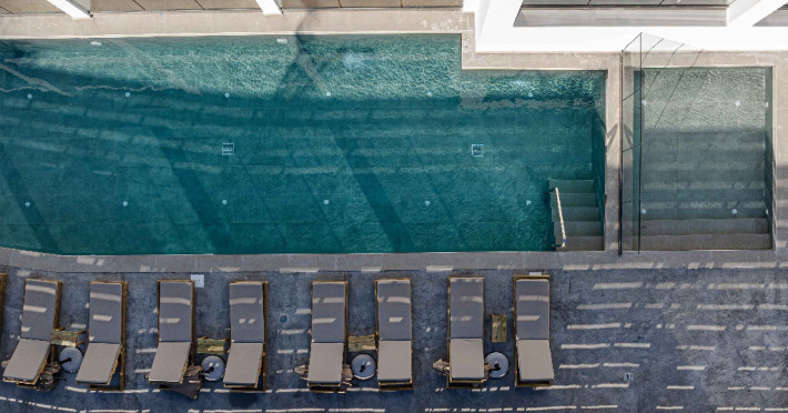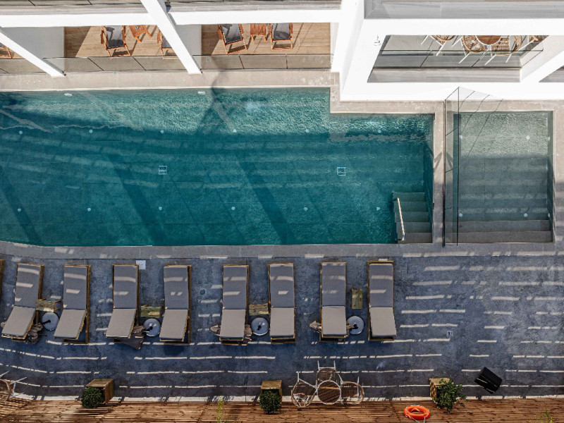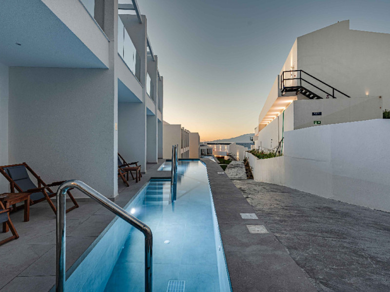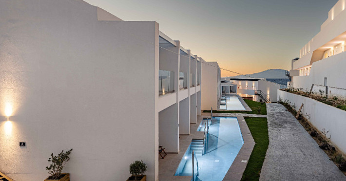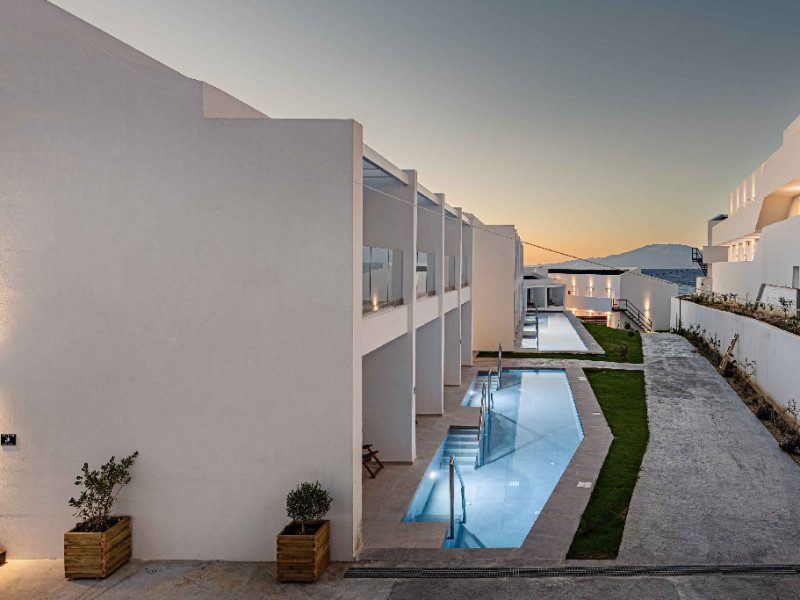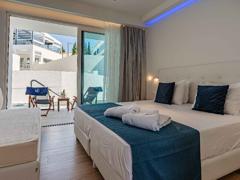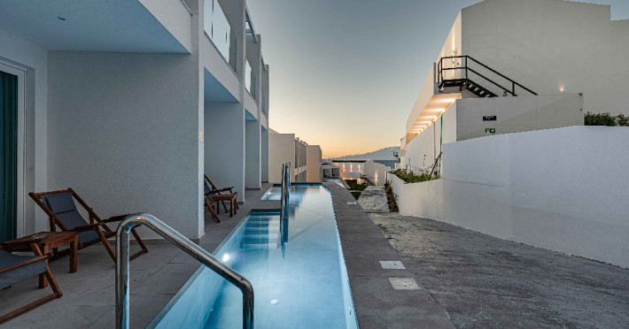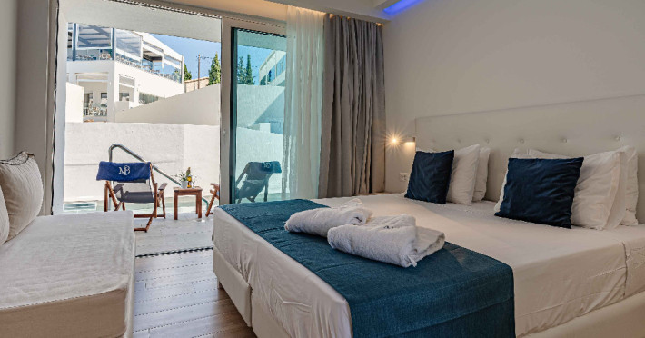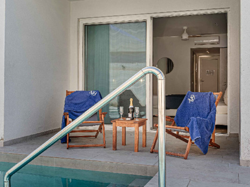 Suita Junior cu piscina comuna aprox. 24 m2; plan deschis (max 2+1 pax: 1 pat dublu sau 2 paturi twin & 1 single sau canapea extensibila.
