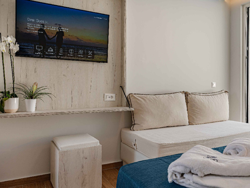 (gratuit), Smart TV de 42 inch (cu canale prin satelit si muzica), mini-frigider,
