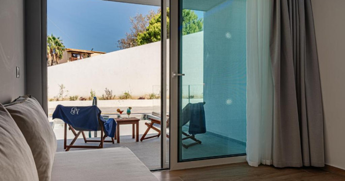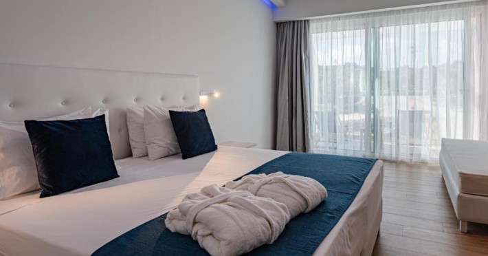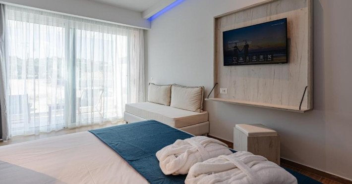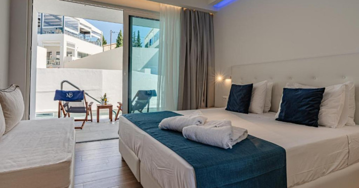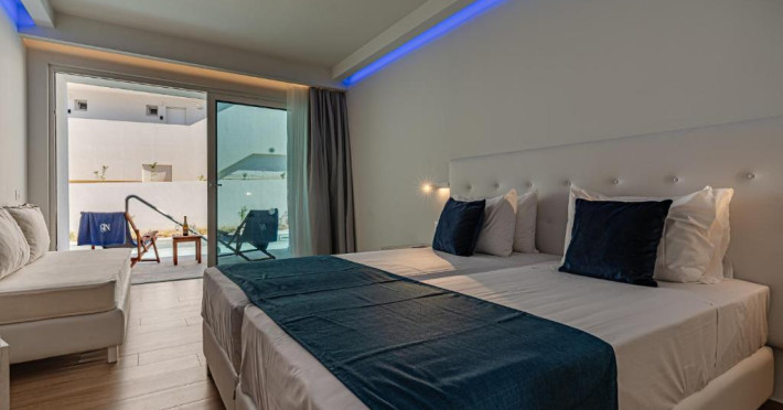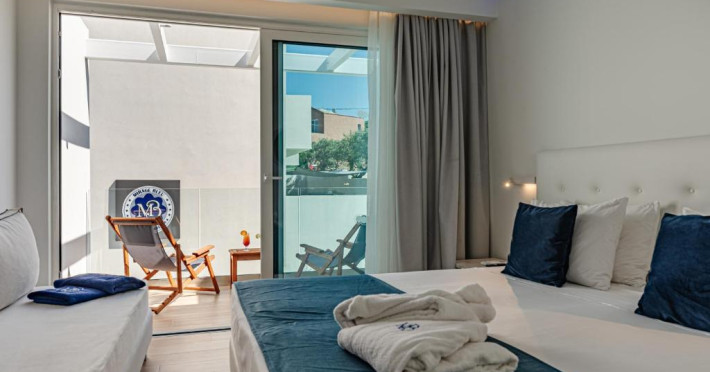 Magique Bleu Suites se află in Tragaki, la 3 minute de mers pe jos de Plaja Amboula, și oferă o piscină in aer liber sezonieră, o grădină, un lounge comun și parcare privată gratuită. Printre facilitățile disponibile la această proprietate se numără un restaurant, room-service și o recepție deschisă nonstop, precum și WiFi gratuit in intreaga proprietate. Acest hotel are o terasă și o cadă cu hidromasaj.