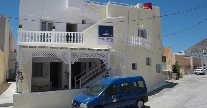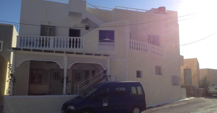 On one of the most easy going areas of Santorini and a few steps from Perissa Black Beach, the white washed Magma rooms offer accomodation of 13 rooms. Ideal for watching the sunrise, Magma Rooms are a family owned bed and breakfast accomodation. From the rooftop terrace you can enjoy the views to the sea while having breakfast delicacies. Moreover you can enjoy the sun loungers throughout the day. The rooms are renovated, offering flat screen tv, minifridge, kettle, iron and ironing facilities. Transfer service is also available from/to the airport.On one of the most easy going areas of Santorini and a few steps from Perissa Black Beach, the white washed Magma rooms offer accomodation of 13 rooms. Ideal for watching the sunrise, Magma Rooms are a family owned bed and breakfast accomodation. From the rooftop terrace you can enjoy the views to the sea while having breakfast delicacies. Moreover you can enjoy the sun loungers throughout the day. The rooms are renovated, offering flat screen tv, minifridge, kettle, iron and ironing facilities. Transfer service is also available from/to the airport.