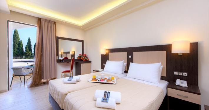 All accommodations offer privacy and intimacy within a setting of calmness and comfort. Situated on the eastern coast of Corfu, in the village of Dasia. Dassia is extremely popular destinations on the scenic island. with younger couples and groups of people because of it’s lively atmosphere.The resort’s privileged location provides easy access to various attractions. Richly endowed by nature, combining the sea blue and the lush greenery, Dasia is providing a great number of services to the visitor, ranging from water sports and sports facilities to bars, clubs and dining options.Datorita dinamicitatii domeniului disponibilitatea ofertelor se modifica de la un moment la altul. De aceea ofertele sunt valabile in limita locurilor disponibile. Agentia nu este responsabila pentru eventualele neconcordante care pot aparea intre informatiile privind tarifele si alte detalii din site si informatiile primite in agentie. In aceste cazuri vor avea prioritate, intotdeauna, informatiile primite in agentie.