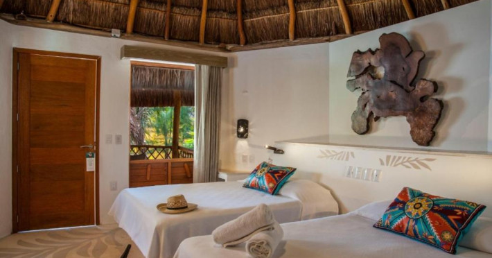 Complexul Mahekal Beach oferă camere spațioase, cu aer condiționat și decor in stil Maya. Camerele liniștite nu au radio sau TV, dar includ servicii de telefonie și conexiune WiFi. Toate camerele au seif privat, baie privată, dotată cu uscător de păr, și terasă cu hamacuri și vedere la mare sau la grădinile tropicale.