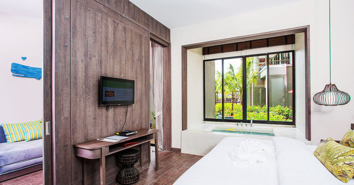 Nestled amongst the lush landscapes of Khao Lak with its own stunning private beach, Mai Holiday is a peaceful and private sanctuary where romantics can escape and rejuvenate. Designed exclusively for adults, our Khao Lak romantic resort offers spacious suites in an intimate setting clustered around an exotic pool, in a private corner of Mai Khaolak Resort. Escape to serenity with a couple's spa treatment in the Mind Romantic Spa and sample the tantalizing flavors at the elegant The Sky restaurant and bar, in full view of colorful sunsets fill the sky. The stylish and comfortable suites at Mai Holiday Khaolak are tucked away in a tranquil adults-only zone with a swimming pool, spa and rooftop restaurant & bar at your disposal. The pampering begins from the moment you arrive and check-in within the comforts of your private suite. The accommodations at our romantic resort in Khao Lak are contemporary in design, offering a separate bedroom and living area both with floor-to-ceiling windows to maximize the tropical views. The spacious layouts allow for relaxation indoors and out, and pool lovers are in for a treat at the pool access suite.Nestled amongst the lush landscapes of Khao Lak with its own stunning private beach, Mai Holiday is a peaceful and private sanctuary where romantics can escape and rejuvenate. Designed exclusively for adults, our Khao Lak romantic resort offers spacious suites in an intimate setting clustered around an exotic pool, in a private corner of Mai Khaolak Resort. Escape to serenity with a couple's spa treatment in the Mind Romantic Spa and sample the tantalizing flavors at the elegant The Sky restaurant and bar, in full view of colorful sunsets fill the sky. The stylish and comfortable suites at Mai Holiday Khaolak are tucked away in a tranquil adults-only zone with a swimming pool, spa and rooftop restaurant & bar at your disposal. The pampering begins from the moment you arrive and check-in within the comforts of your private suite. The accommodations at our romantic resort in Khao Lak are contemporary in design, offering a separate bedroom and living area both with floor-to-ceiling windows to maximize the tropical views. The spacious layouts allow for relaxation indoors and out, and pool lovers are in for a treat at the pool access suite.