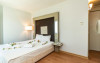Sunt disponibile 92 camere. În camere există baie cu cadă sau duș prevăzută cu foehn. Camerele au balcon cu masă și scaune unde pot fi petrecute momente de relaxare. Camerele de la Maira Deluxe Resort Hotel Bodrum sunt dotate cu aer condiționat, Tv cu canale prin satelit și seif. Oaspeții au acces gratuit la serviciul Wi-fi în camere. Curățenia in cameră se face zilnic.