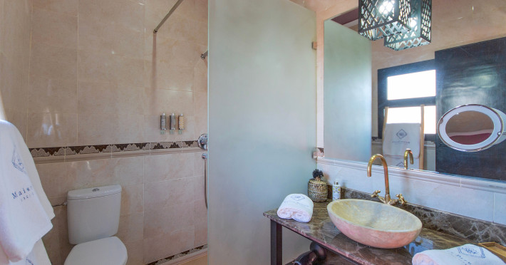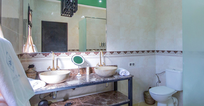The hotel MAISON DAOUIA is located 14 km from the nearest bars and restaurants. The old town is around 16 km away. A supermarket and other shops you reach after around 8 km. There is a 24h shuttle service between the hotel and the airport (for a fee) 24h a day. On the beach are sun loungers available. The air-conditioned, GPS-verified halal hotel is equipped with a 24h reception (check-in is possible around the clock), a lounge, a lobby bar, Wi-Fi, internet access, showers and changing rooms, a first aid kit as well as parking spaces (limited). In the outdoor area you will find a garden as well as a pool that is open seasonally (open all year), where sun loungers, sun umbrellas and pool towels are available for free. There is also a children's pool. Furthermore, outside you can find a sun terrace on the roof of the building. You can store your valuables in the safe, and your luggage in the hotel`s storage room. In addition, the hotel MAISON DAOUIA is video-monitored 24h a day. For your entertainment, the hotel offers a library/reading room. For the young hotel guests there is a playground. Highchairs are available. Cots are available for a fee. There is also an ironing service. For your comfort, in addition to the concierge service the hotel page will ensure you are looked after. If necessary, you can contact the medical centre at any time (for a fee). The energy supply is 220 Volts. In addition, the hotel sells tickets for excursions. For guests on their honeymoon, the hotel has special offers such as a romantically-decorated room, personalised rooms/articles, rooms with a particularly romantic location and view, special honeymoon packages, romantic dishes in the restaurant, champagne, sparkling wine, a present, a basket of fruit or flowers in the room. In your hotel, a lot of focus is placed on sustainability. This includes the provision of soap, shampoo and lotion dispensers, organic food and ecological meals, a central room air-conditioning and environmentally-friendly cleaning. The hotel requires that all guests pay a deposit upon arrival. Euro/Master Card is accepted as means of payment. Due to its barrier-free facilities , such as barrier-free entrances, the hotel is also suitable for wheelchair users. Catering As catering services the hotel offers half board and half board plus. Breakfast is offered continental or à la carte (extras on request). Lunch and dinner are also served as a set meal or à la carte with starters, salads and desserts (extras on request and at extra cost). Half board includes breakfast and dinner. When booking half board plus, breakfast, lunch, dinner and selected imported spirits (limited) are included. As part of the all-inclusive service, water (24h), softdrinks (24h), coffee and tea (24h), beer (24h), wine (24h) as well as local and international alcoholic beverages (24h, limited) are available at no extra charge. For the meals, there are a restaurant with terrace (calorie-reduced and vegetarian dishes) and a 24h snackbar as well as the pool bar. The drinks menu of the hotel includes water, soft drinks, coffee and tea, beer, wine and 24h international alcoholic beverages. During your stay you can take part in the cooking classes offered by the hotel (extra fee). Distances