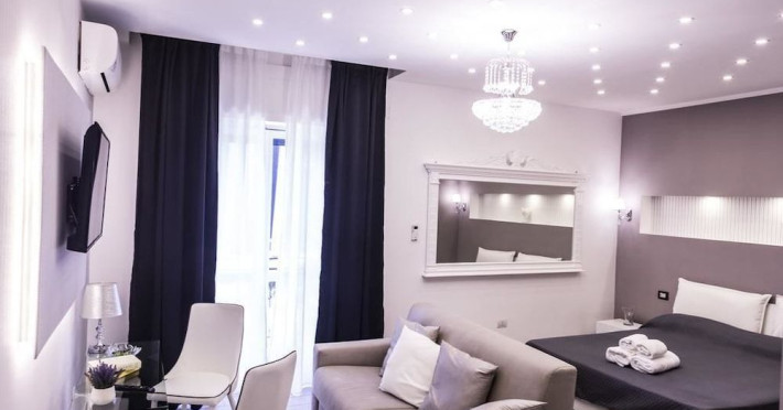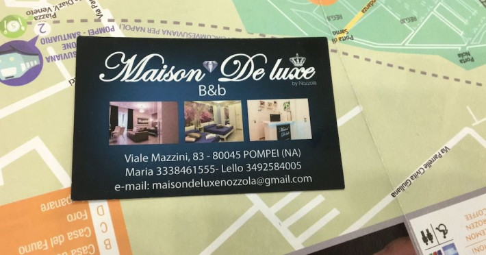 Set in Pompei, 1 km from Pompei Ruins and 1.9 km from Pompeii Forum, Maison De luxe offers accommodation with free WiFi, air conditioning, a bar and a shared lounge. All units come with a seating area, a flat-screen TV with cable channels and a private bathroom with a hairdryer, bidet and shower. A microwave, an oven and toaster are also featured, as well as a kettle and a coffee machine. Guests at the bed and breakfast can enjoy a continental breakfast. Maison De luxe offers a terrace. A car rental service is available at the accommodation. The nearest airport is Naples International, 24 km from Maison De luxe, and the property offers a paid airport shuttle service.Set in Pompei, 1 km from Pompei Ruins and 1.9 km from Pompeii Forum, Maison De luxe offers accommodation with free WiFi, air conditioning, a bar and a shared lounge. All units come with a seating area, a flat-screen TV with cable channels and a private bathroom with a hairdryer, bidet and shower. A microwave, an oven and toaster are also featured, as well as a kettle and a coffee machine. Guests at the bed and breakfast can enjoy a continental breakfast. Maison De luxe offers a terrace. A car rental service is available at the accommodation. The nearest airport is Naples International, 24 km from Maison De luxe, and the property offers a paid airport shuttle service.
